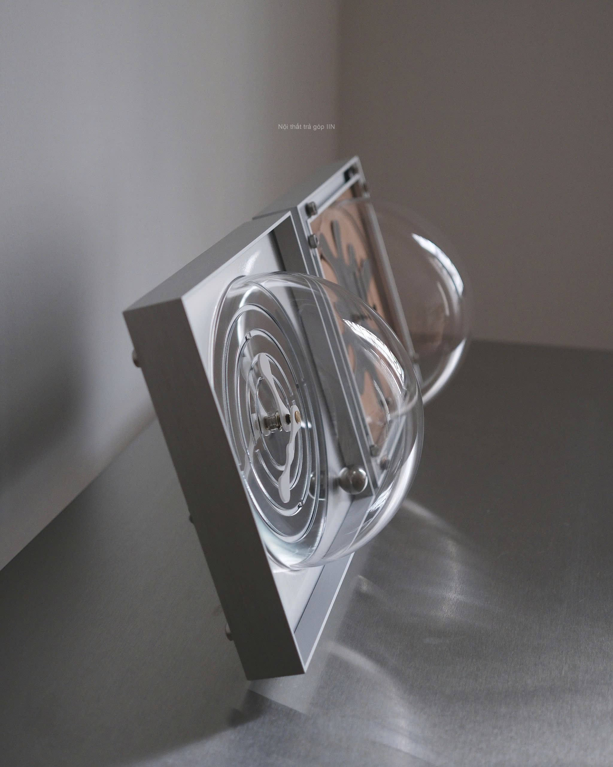 Phần nhựa trong suốt bảo vệ bên ngoài, vừa tôn lên chi tiết bên trong, vừa dễ dàng vệ sinh. Kiểu dáng hiện đại pha chút phá cách, phù hợp đặt trên bàn làm việc, kệ sách hay treo lên tường để tạo điểm nhấn cho không gian. Màu sắc trung tính, dễ phối với nhiều phong cách nội thất.