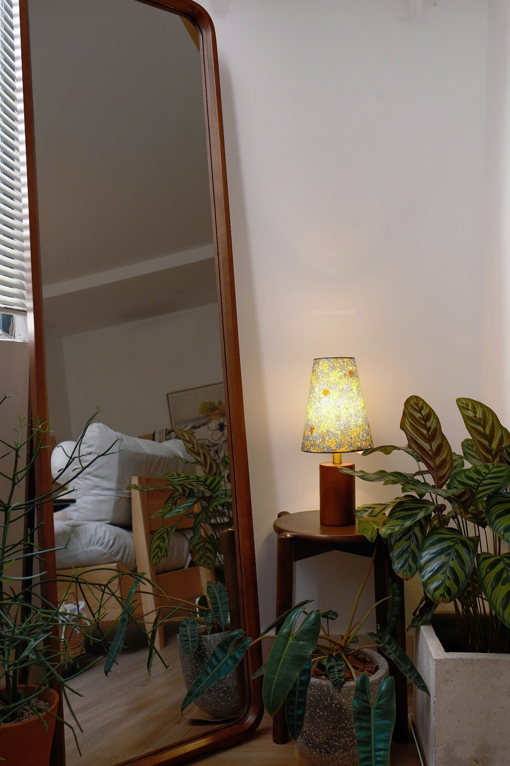 Đèn bàn retro 25 hoa nhí vàng xanh