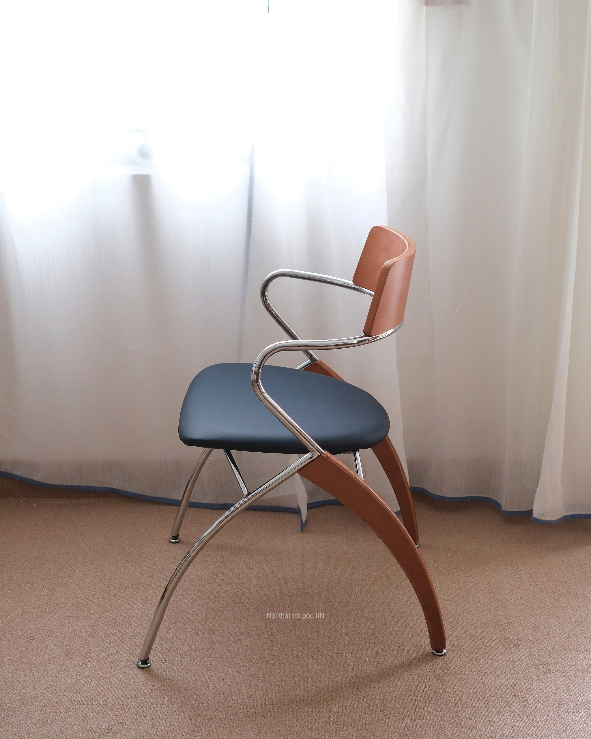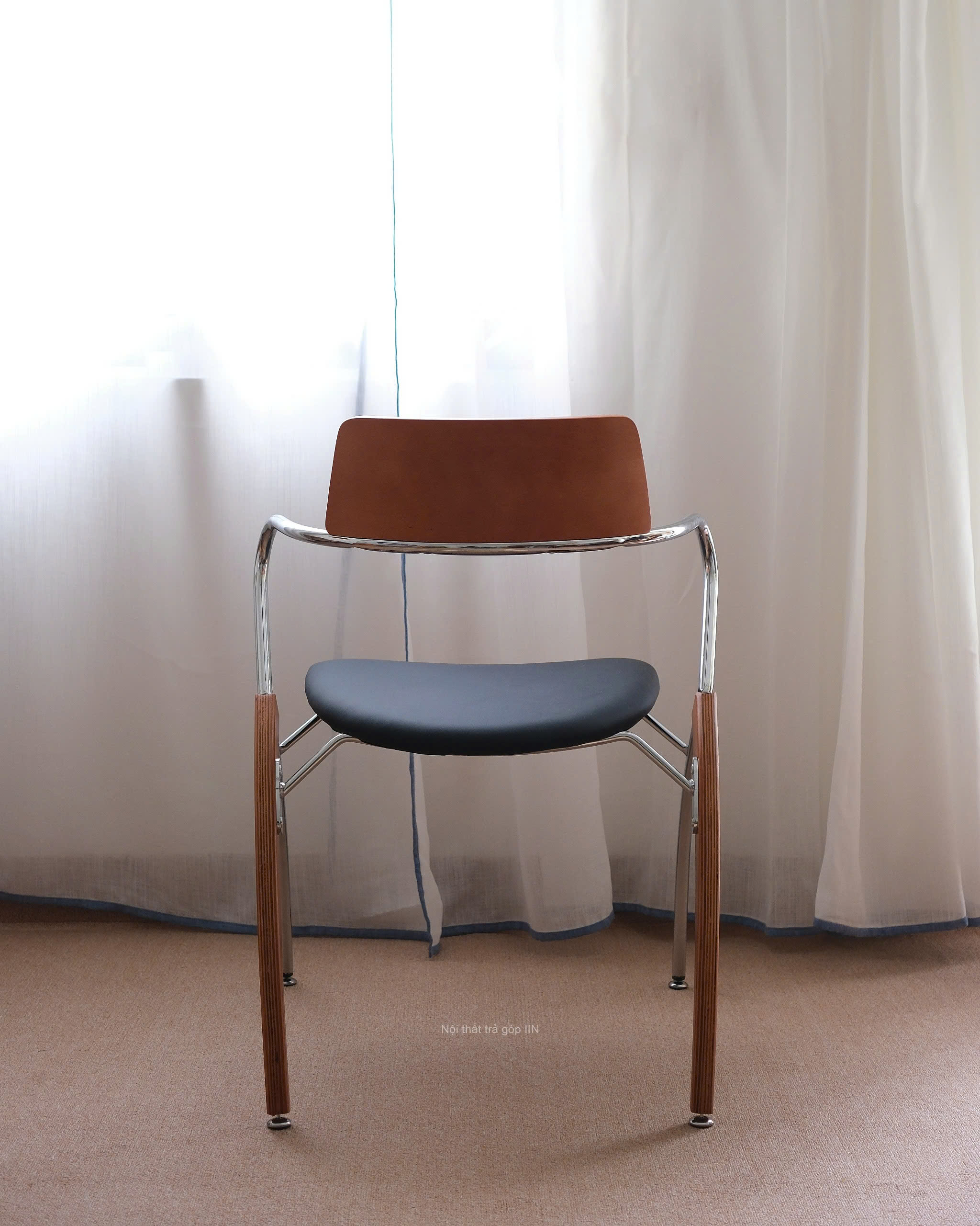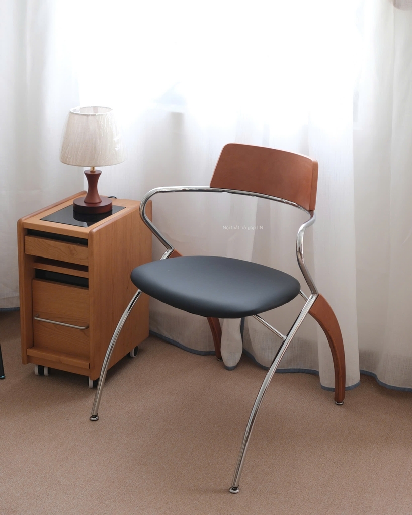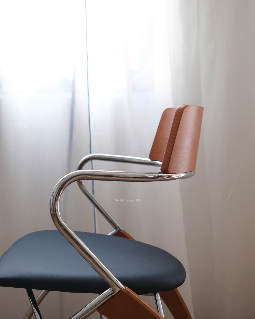 Ghế gỗ 08 là lựa chọn lý tưởng cho những ai thích sự gọn gàng nhưng vẫn muốn điểm nhấn lạ mắt cho không gian. Khung ghế kim loại sáng bóng kết hợp phần tựa lưng và chân gỗ tạo nên nét hiện đại xen lẫn chút ấm áp.