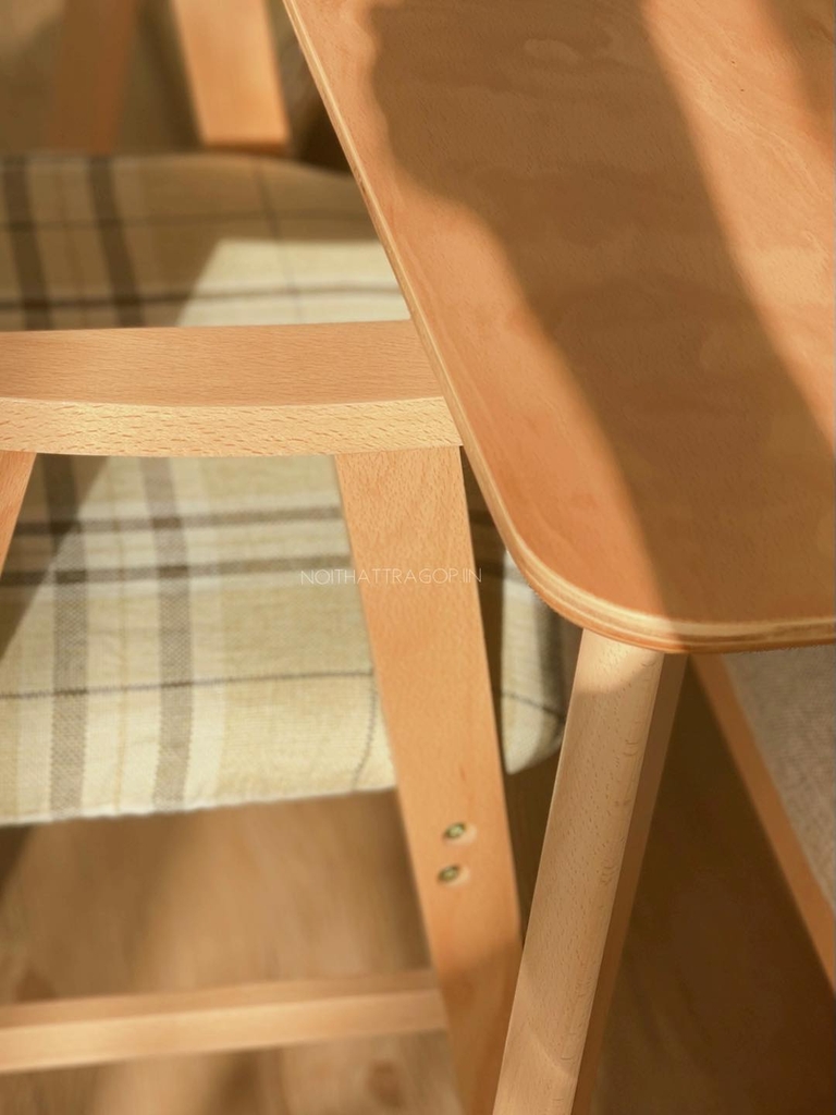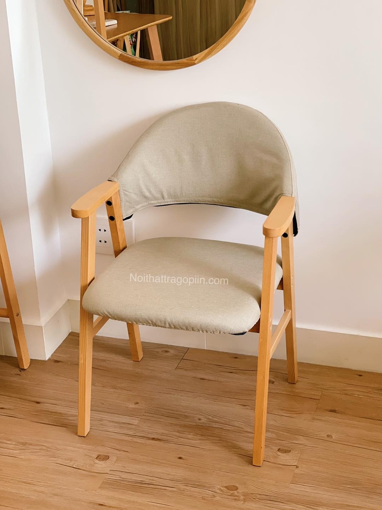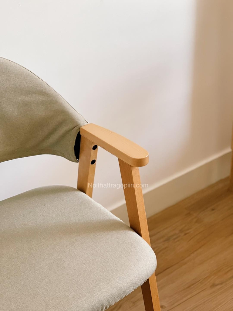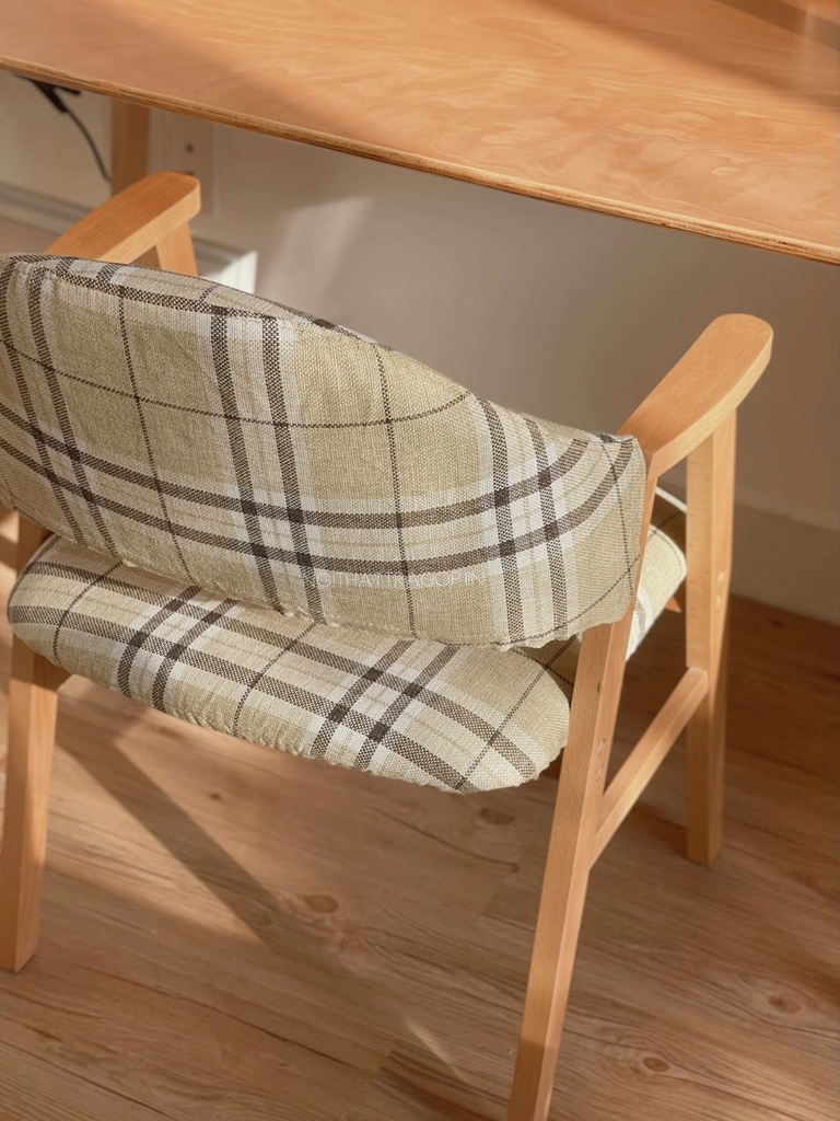 Ghế tựa đệm caro chân gỗ 02 IIN có 2 màu: caro kẻ xám xanh và xám trơn