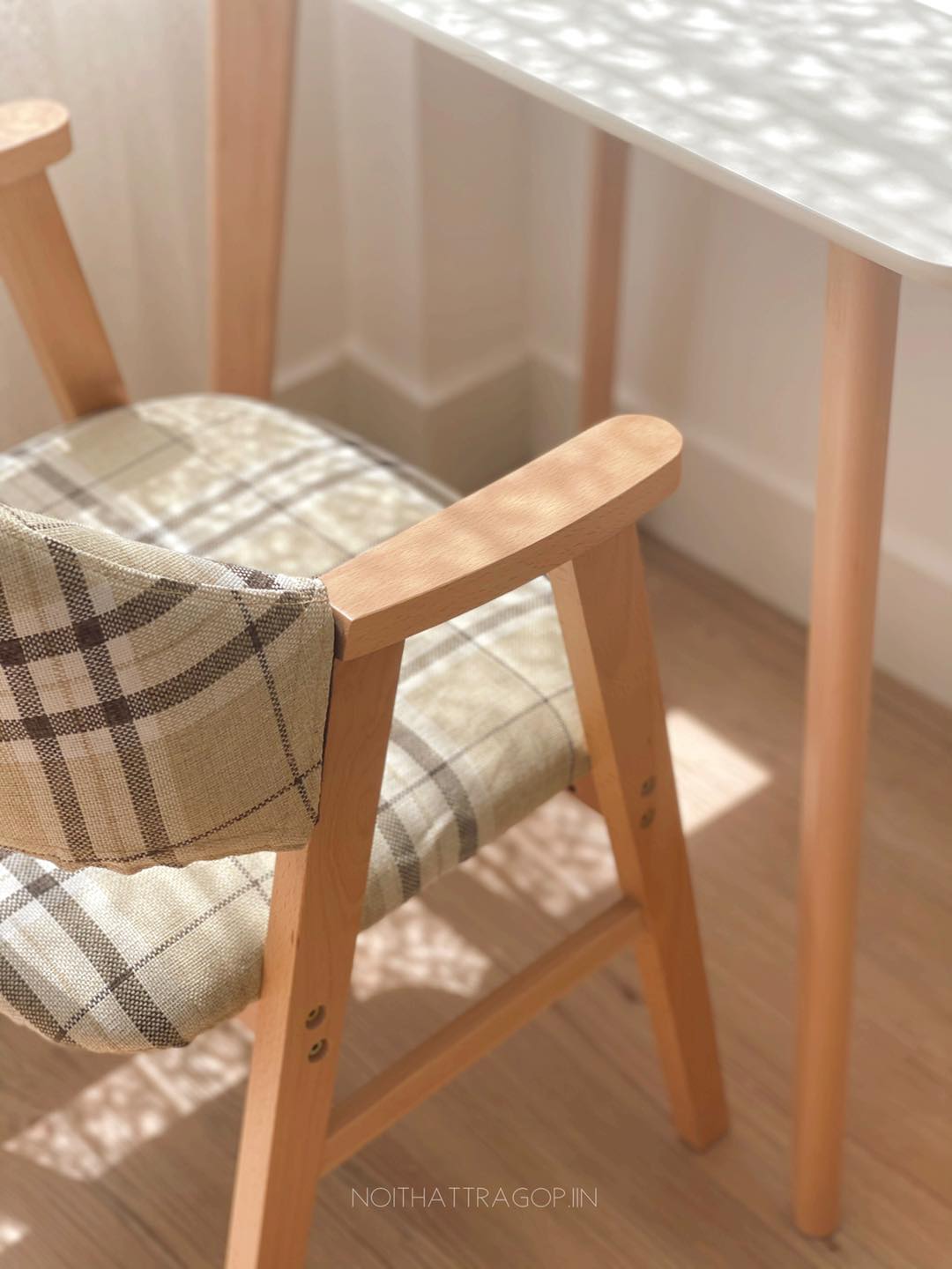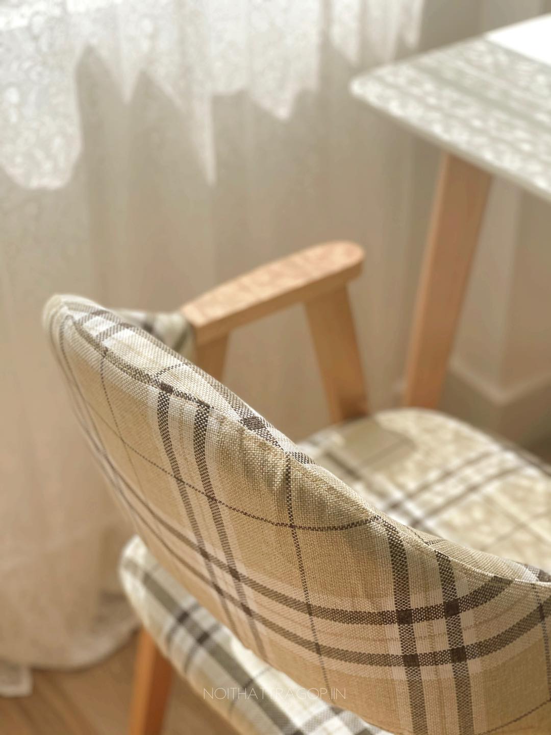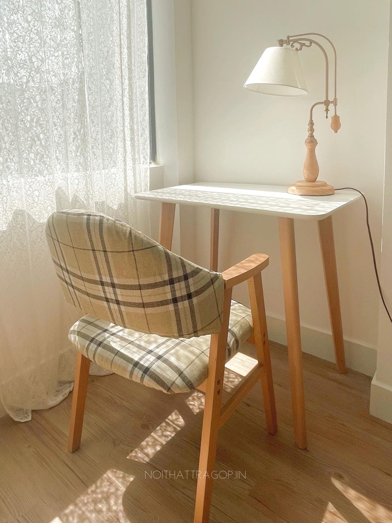 Ghế tựa đệm caro chân gỗ 02 IIN có 2 màu: caro kẻ xám xanh và xám trơn