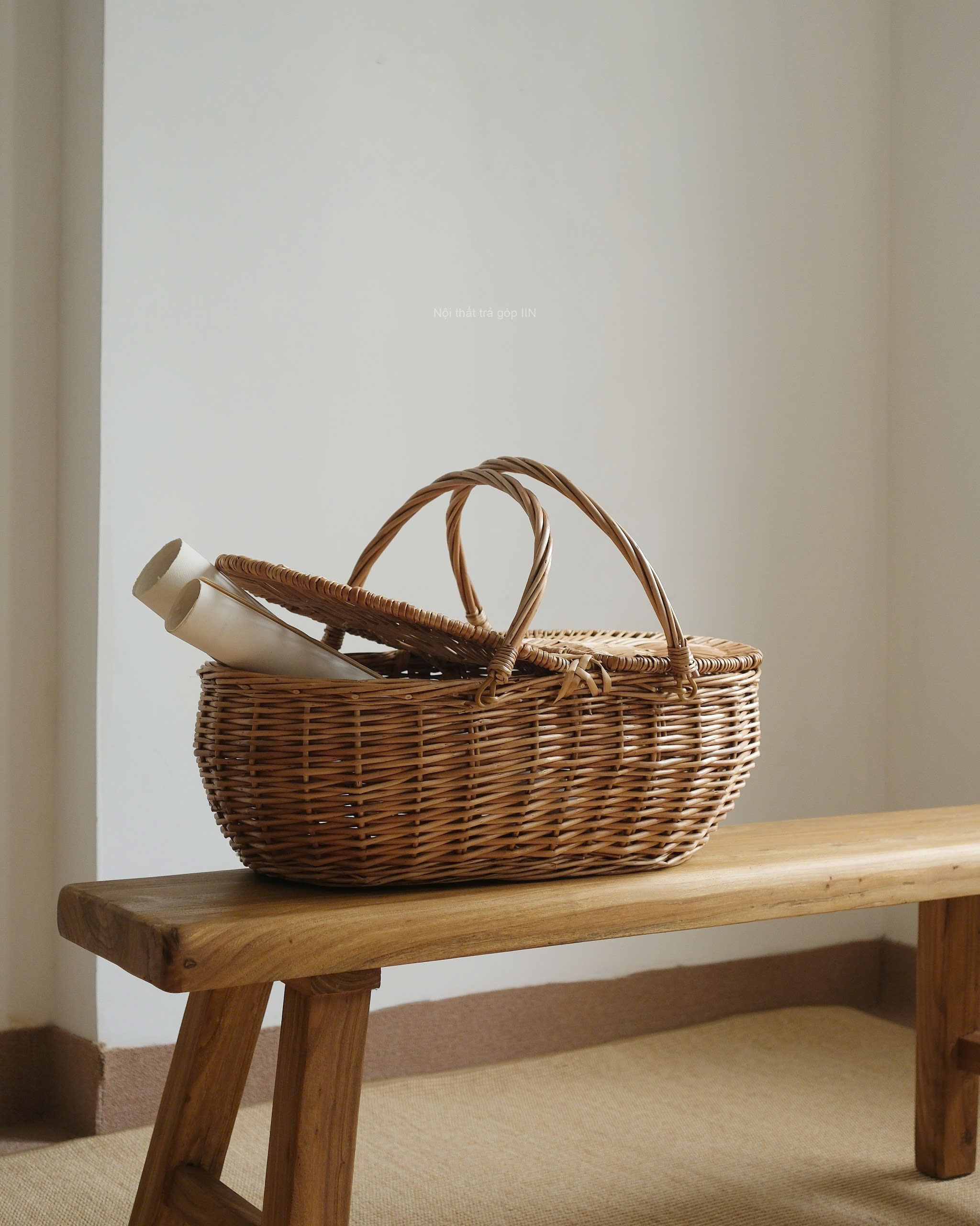 Chiếc giỏ tụi mình chọn cũng là kiểu mang đi dã ngoại, nhưng không có lớp vải lót bên trong, nhờ vậy mà trông mộc hơn, gần với chất tự nhiên của mây hơn.