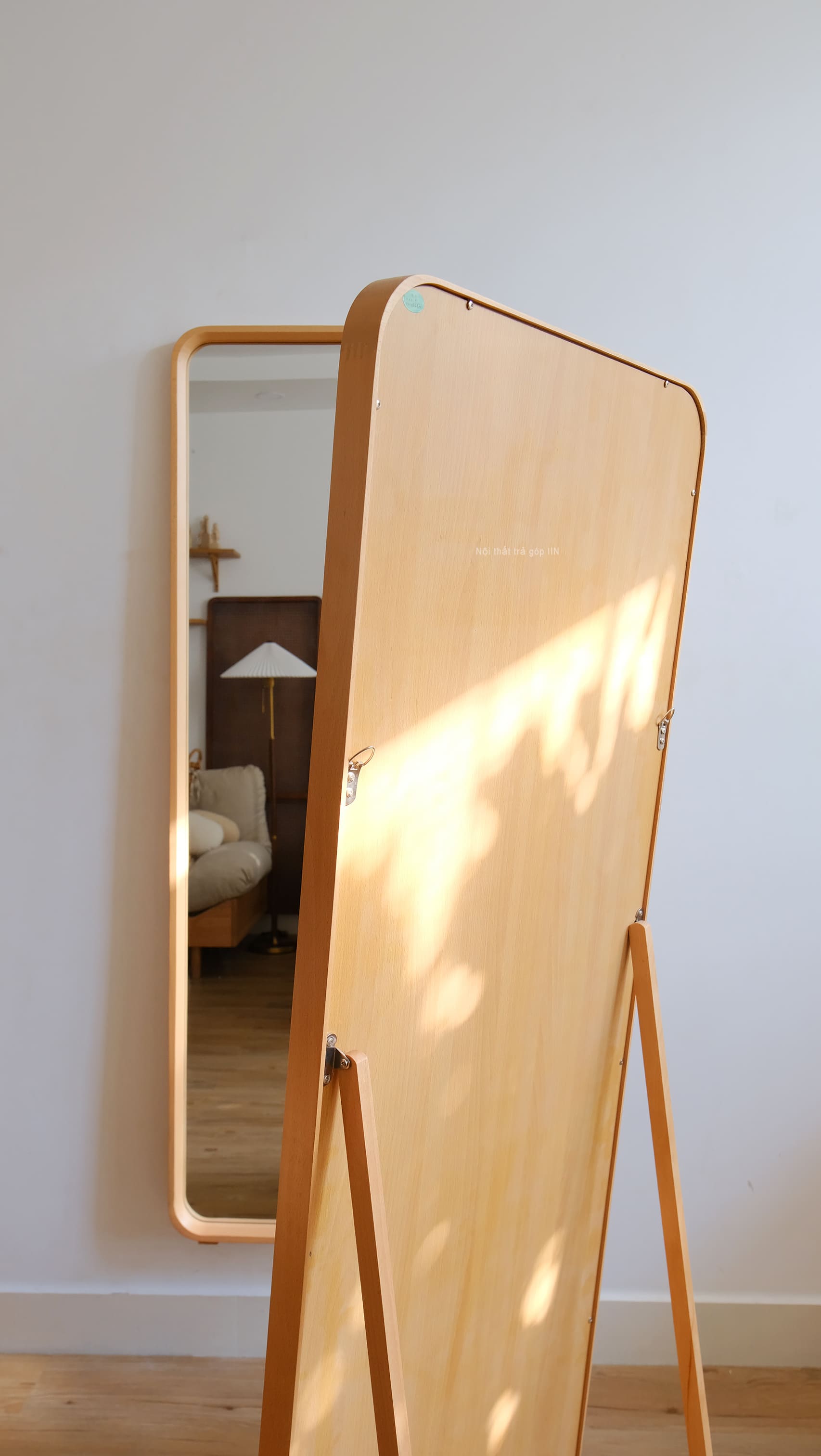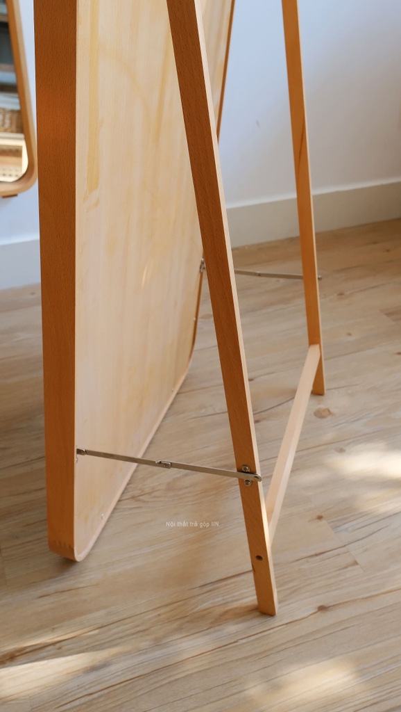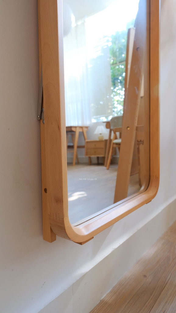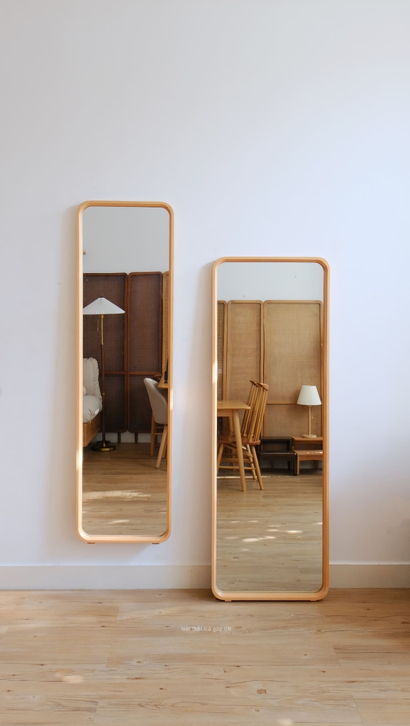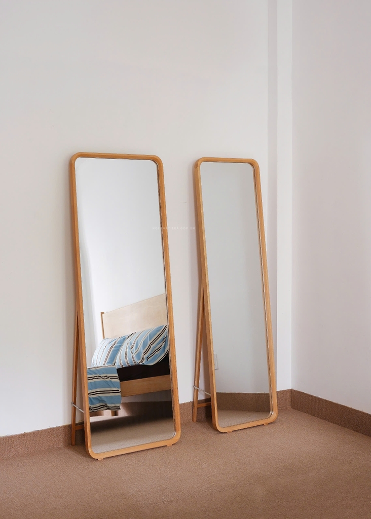Gương toàn thân khung gỗ tự nhiên vừa treo tường được vừa có chân đứng không cần tựa tường.
