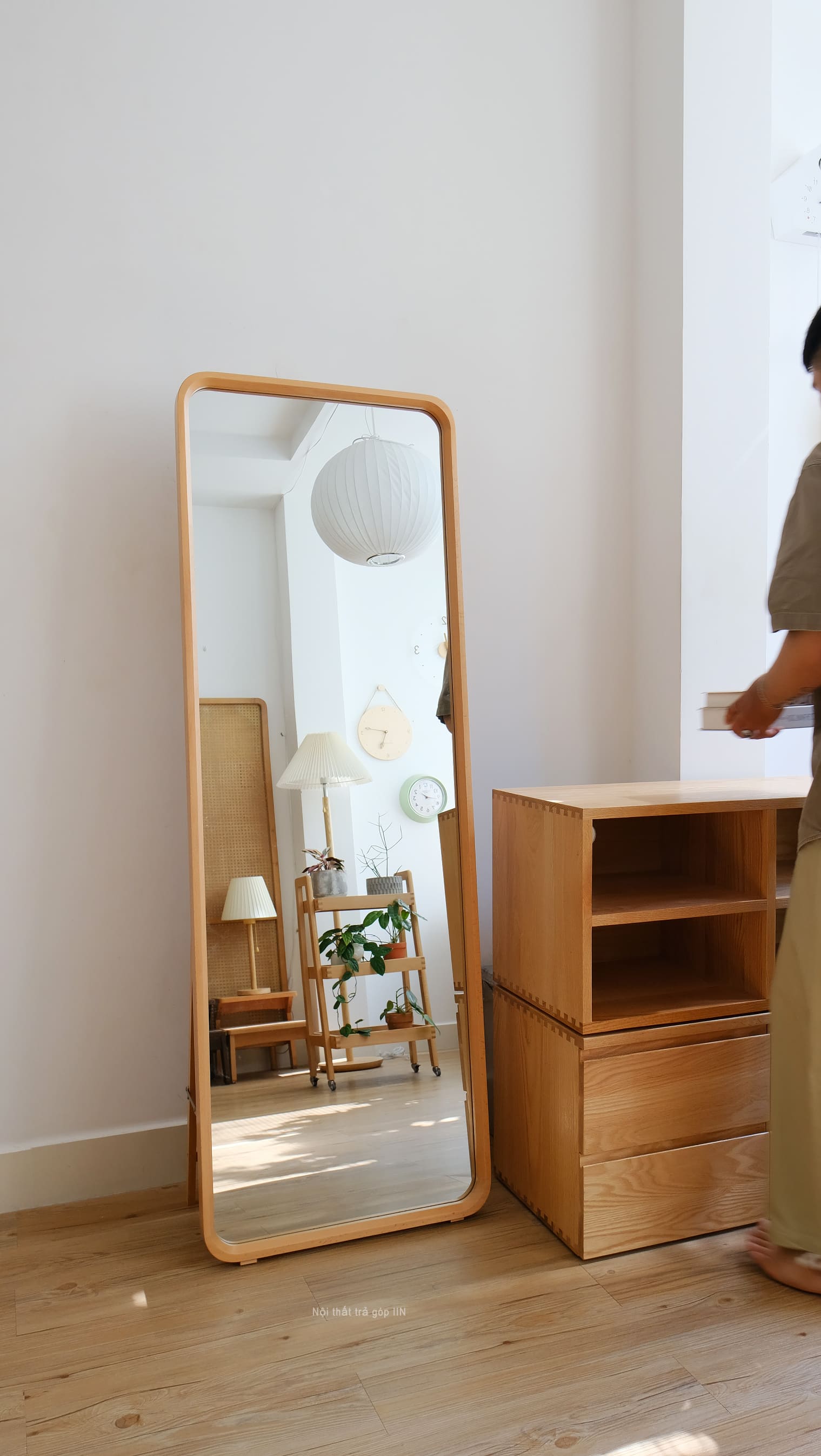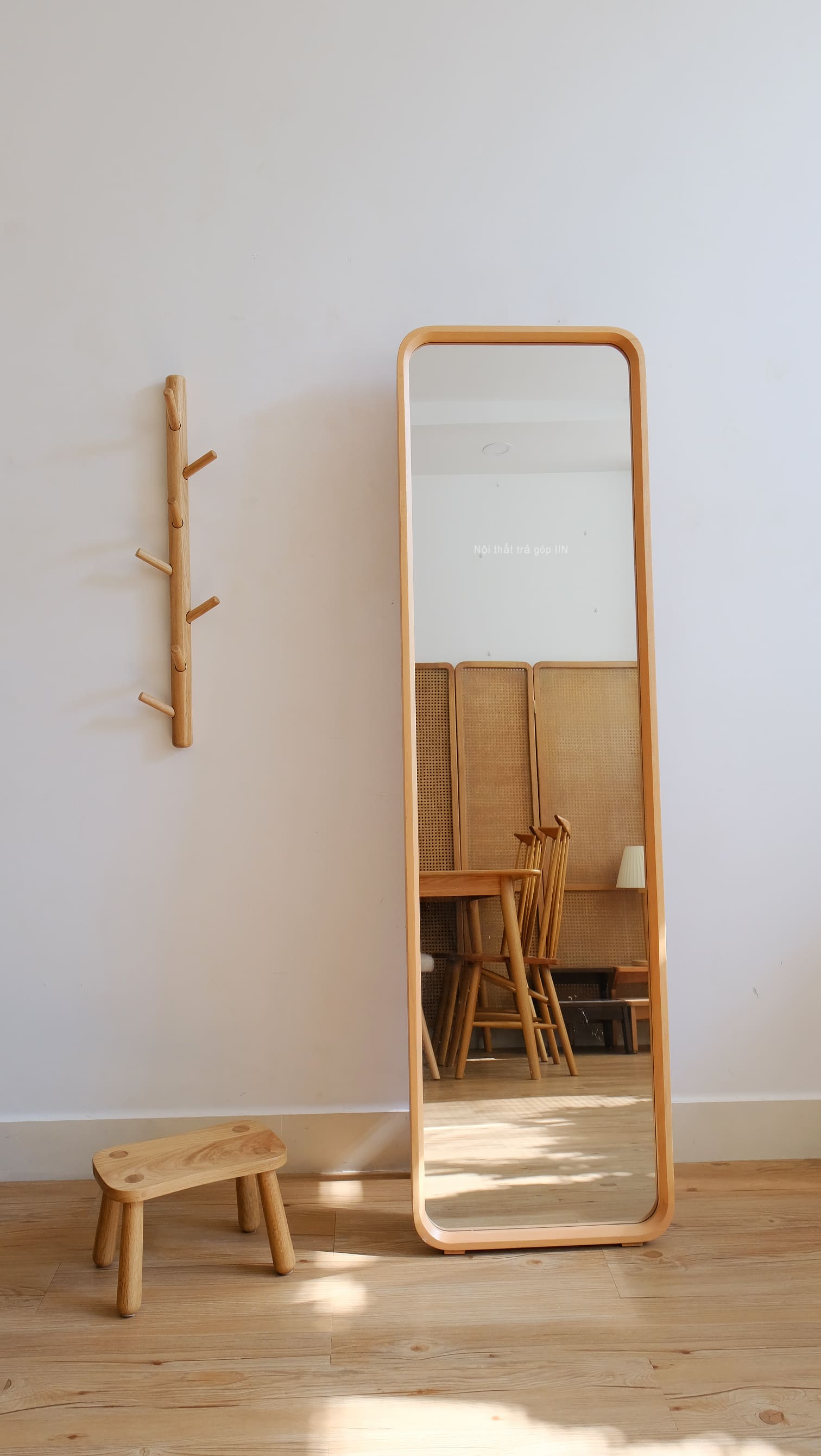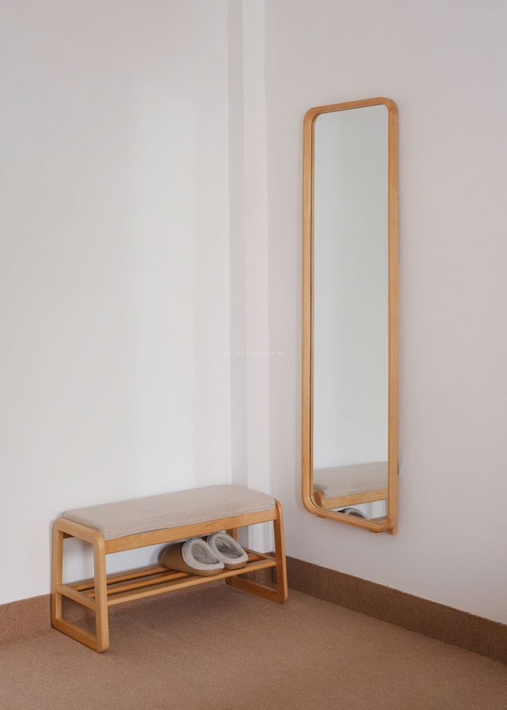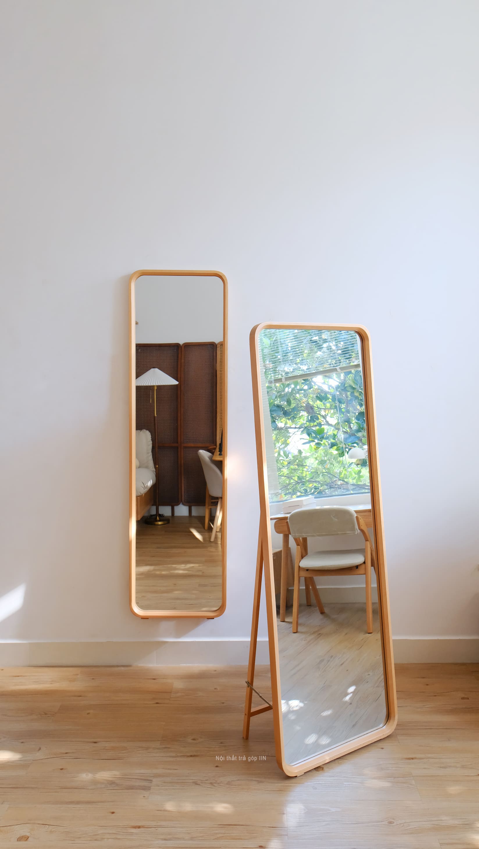 Gương toàn thân khung gỗ tự nhiên vừa treo tường được vừa có chân đứng không cần tựa tường.