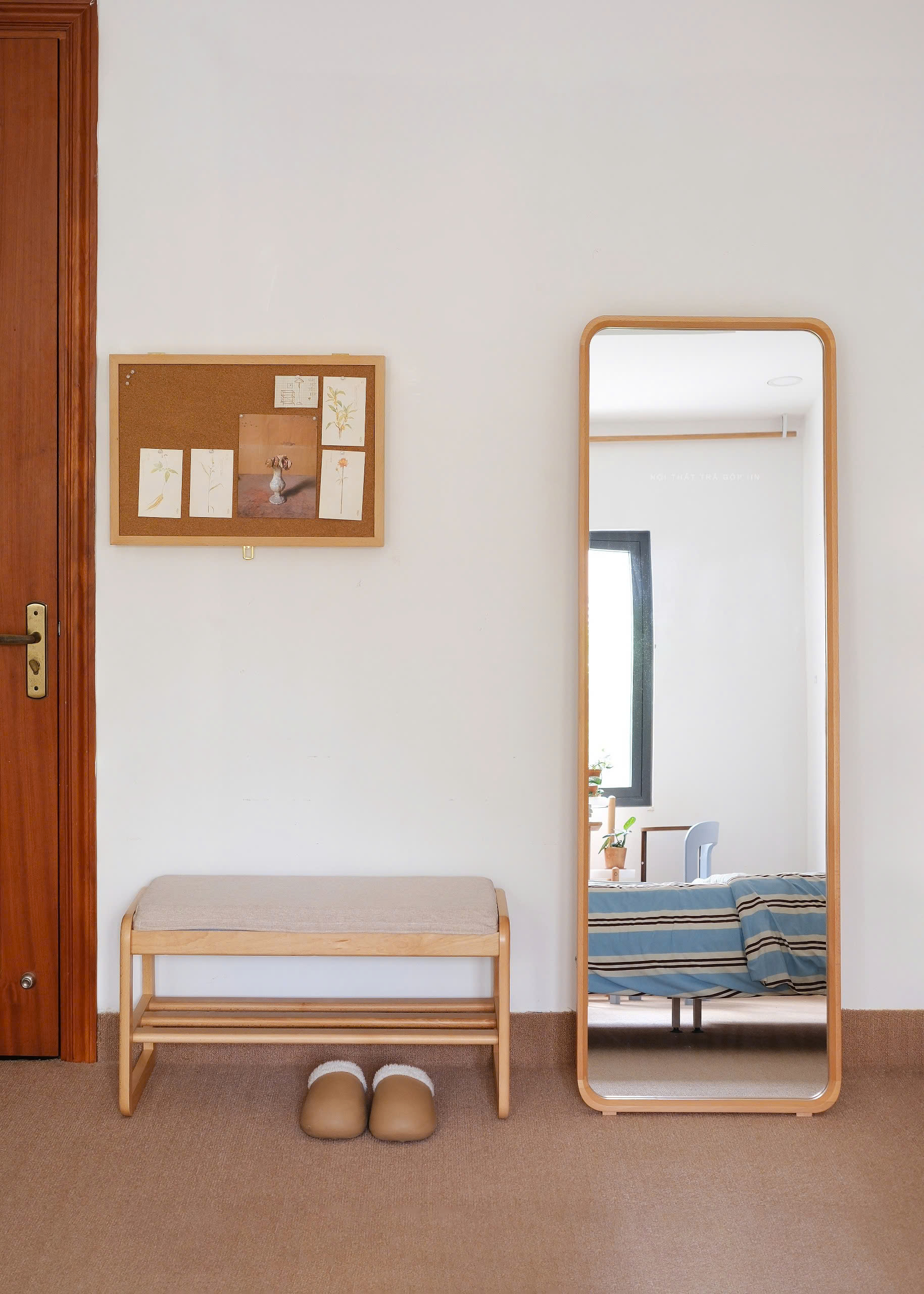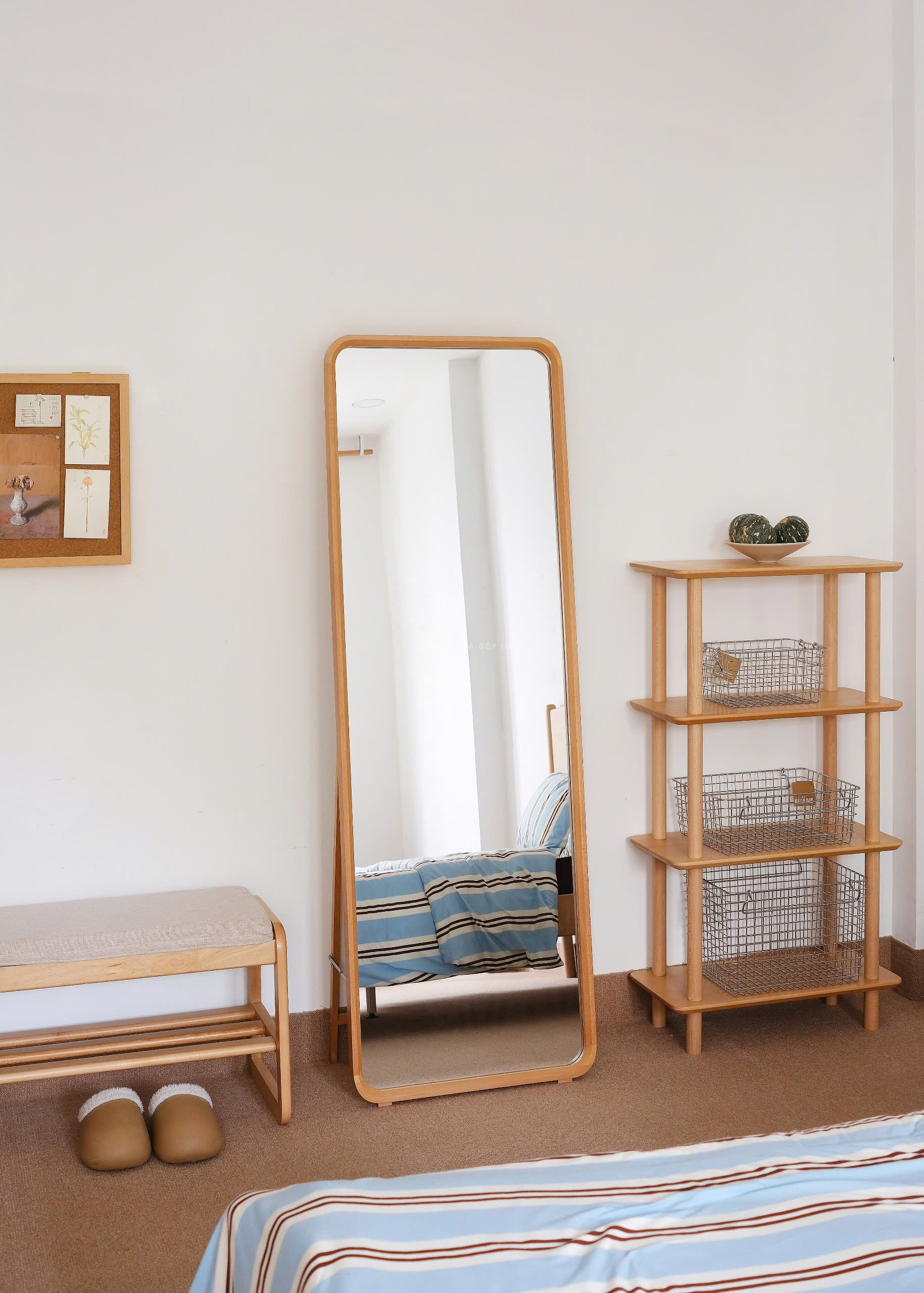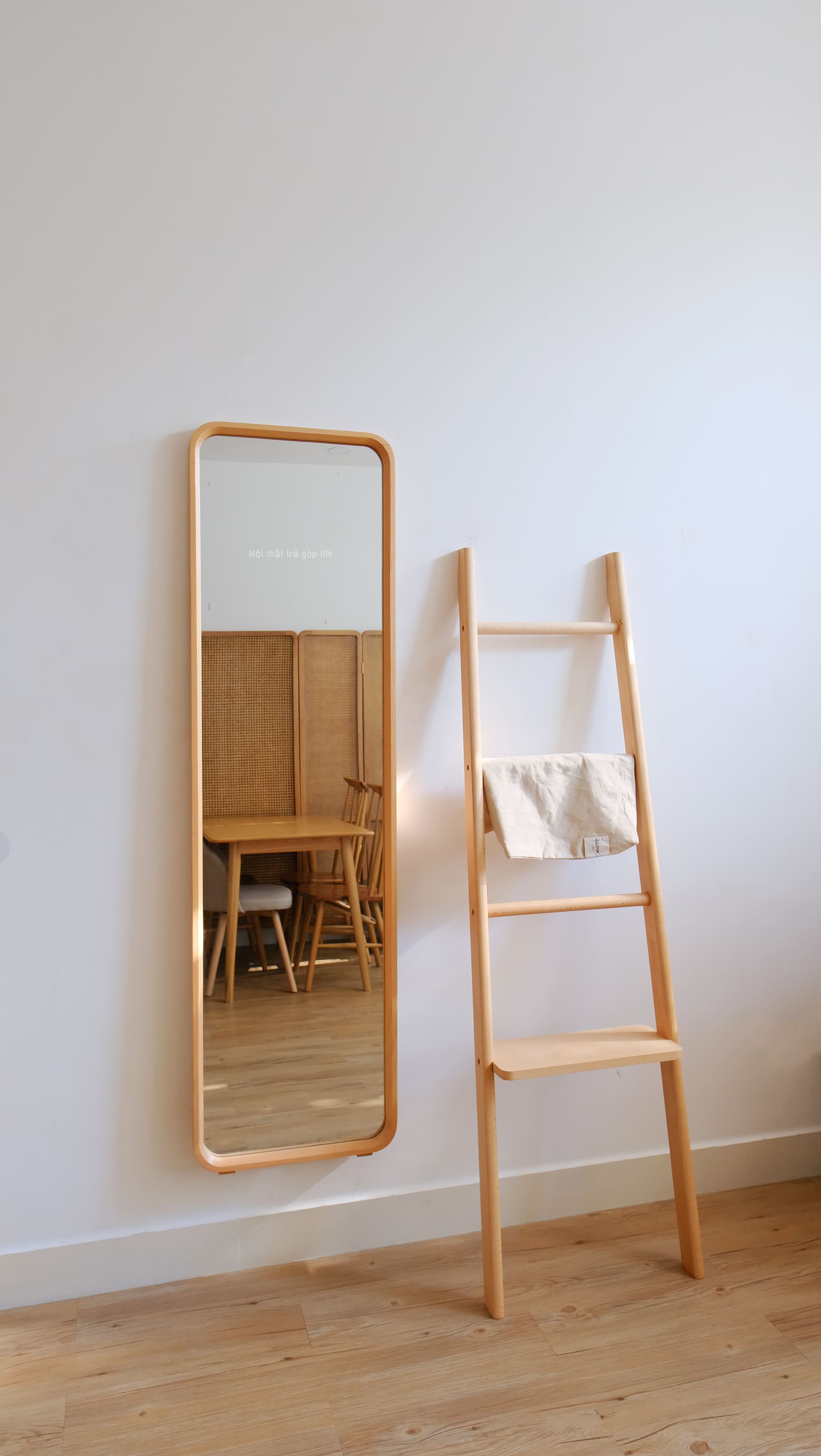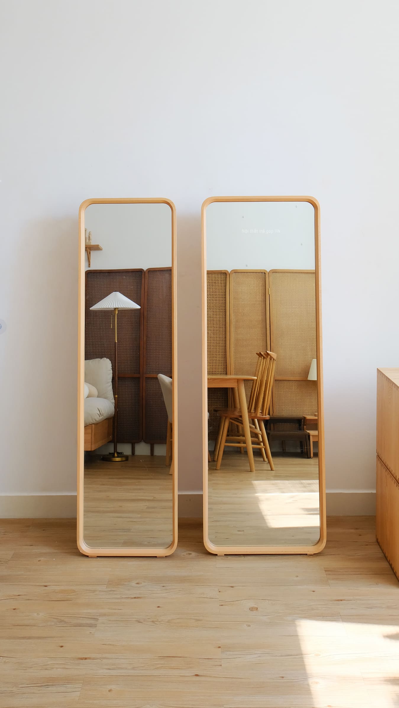 Gương toàn thân khung gỗ tự nhiên vừa treo tường được vừa có chân đứng không cần tựa tường.