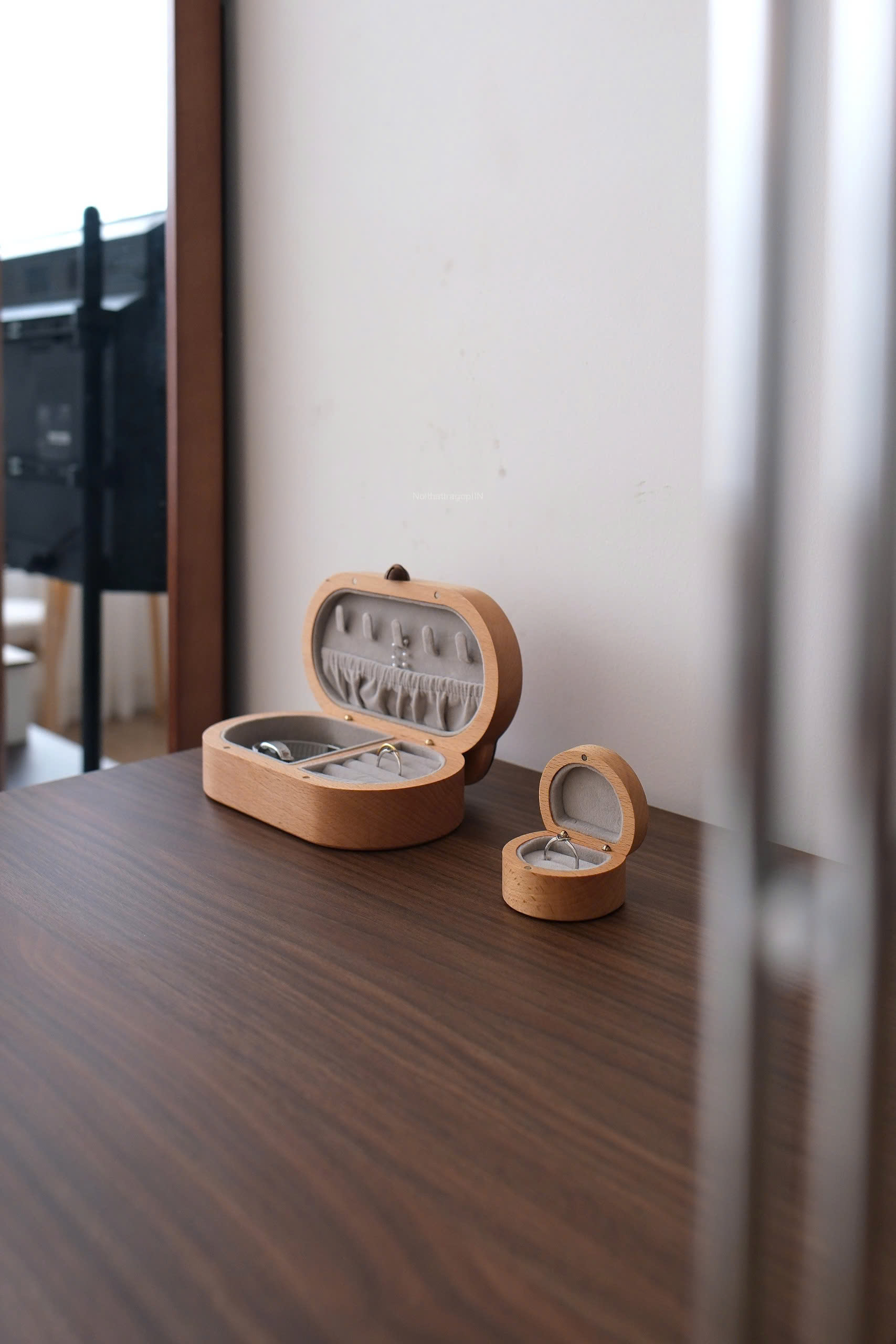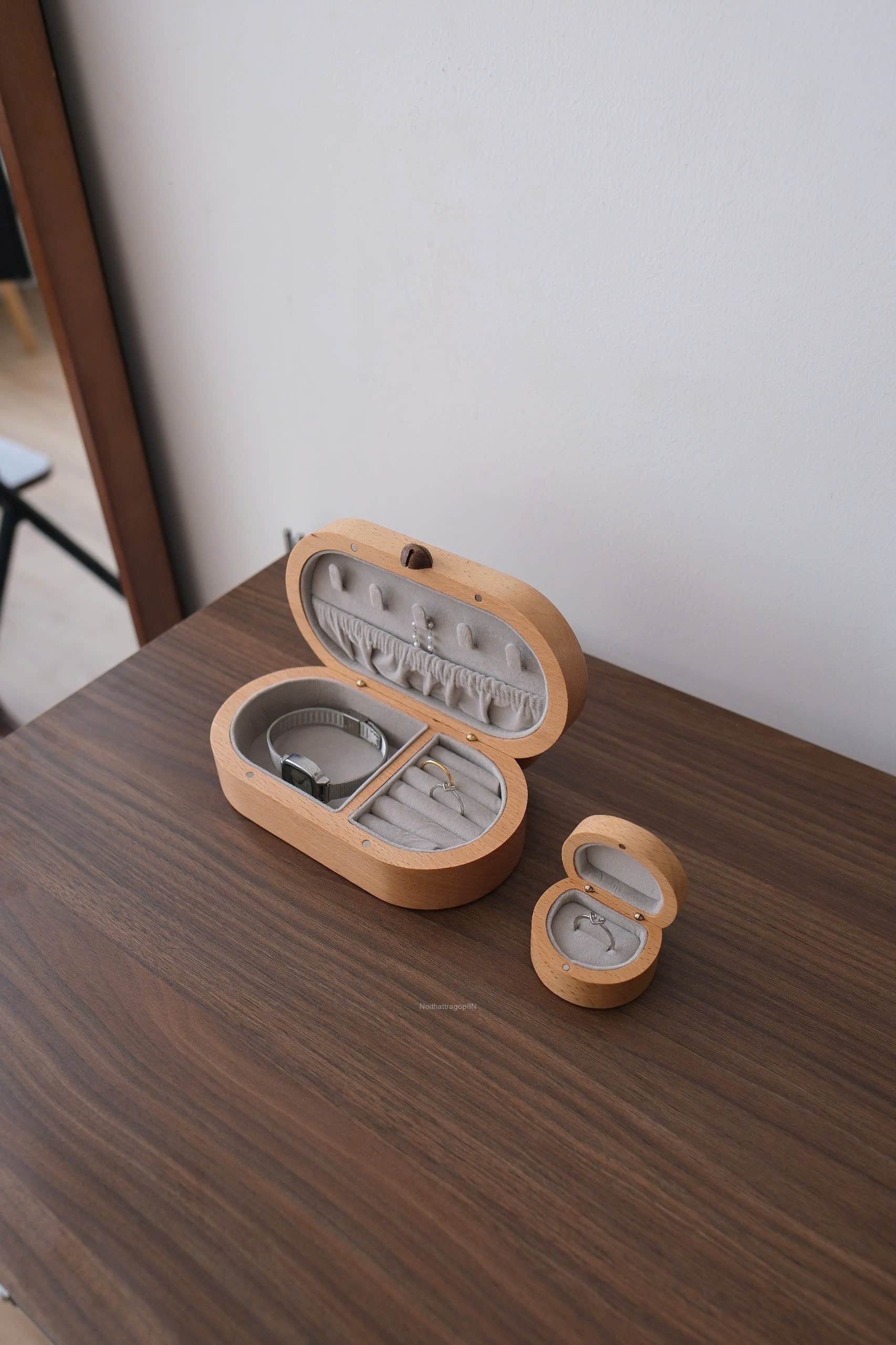 Hộp trang sức từ gỗ tự nhiên mộc mạc, có độ hoàn thiện cao, bề mặt được xử lý mịn màng, tạo cảm giác dễ chịu khi chạm, vì là gỗ tự nhiên nên sẽ mỗi hộp sẽ có vân gỗ và độ đậm nhạt khác nhau ^^