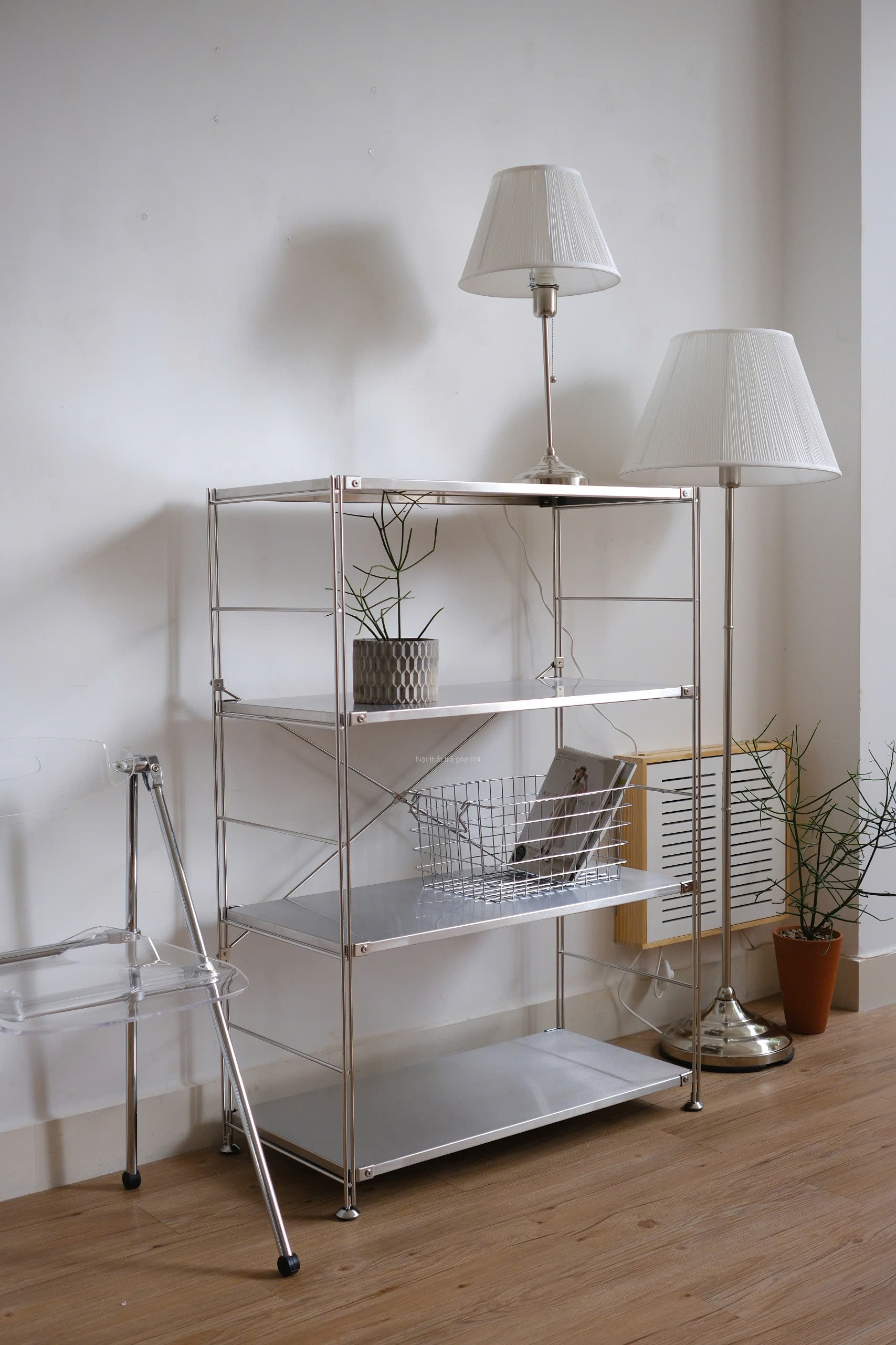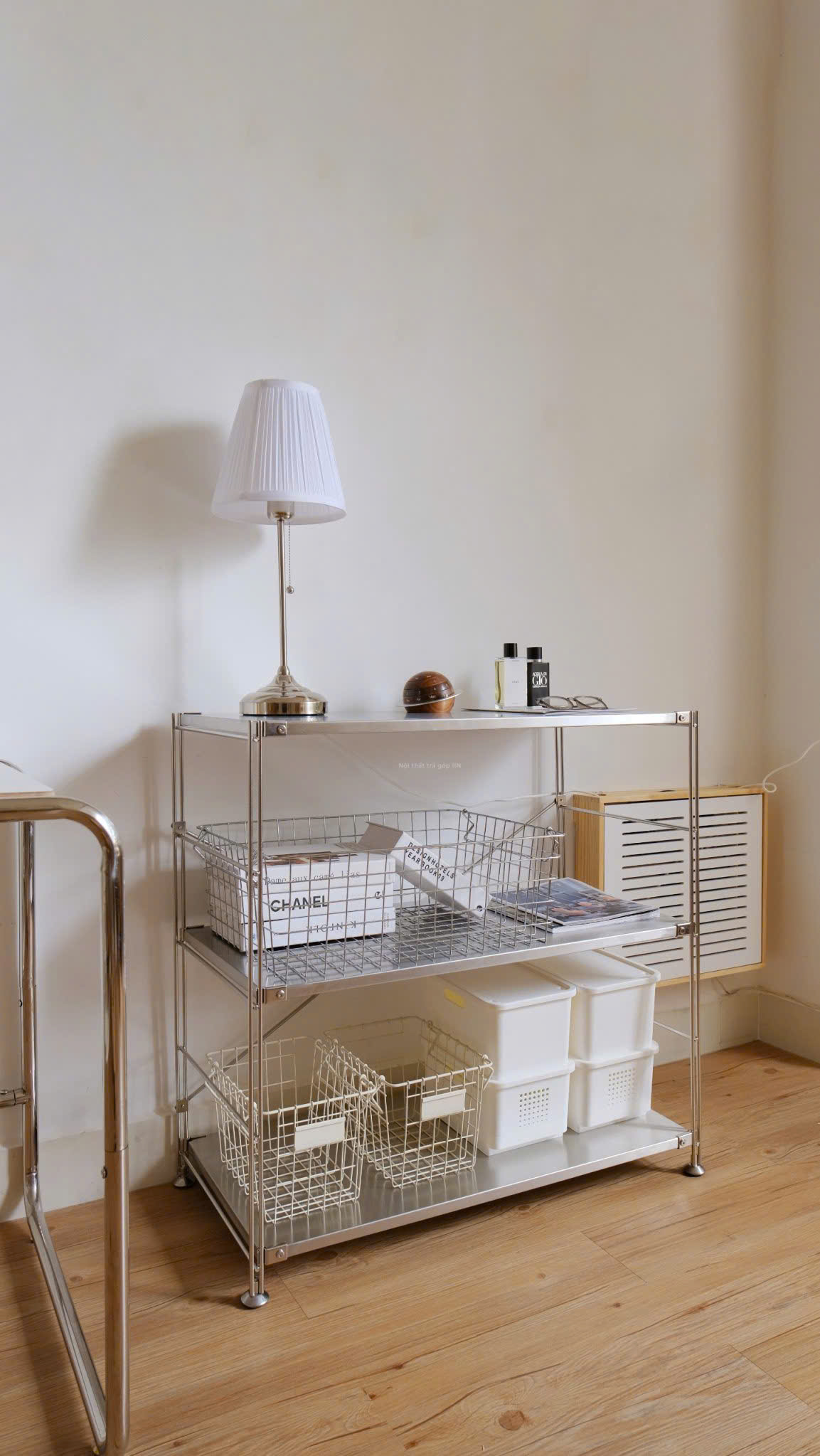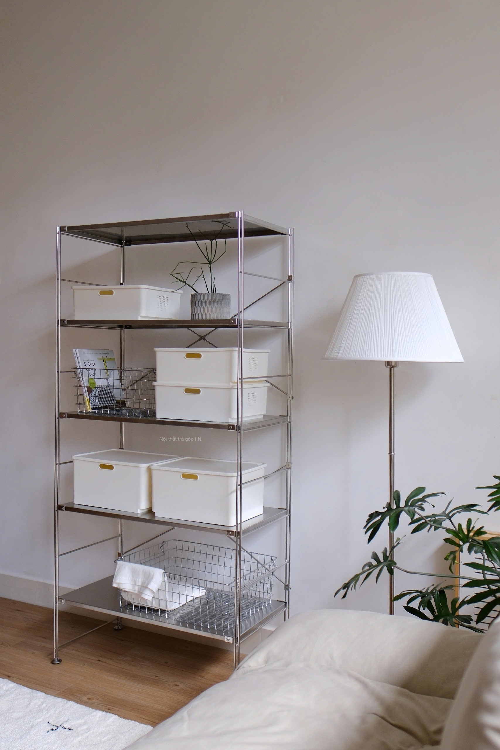 Kệ đứng full inox phù hợp để trưng bày khu vực phòng khách, phòng ngủ, làm kệ bếp,... Mỗi khay chịu tải từ 10-15kg.