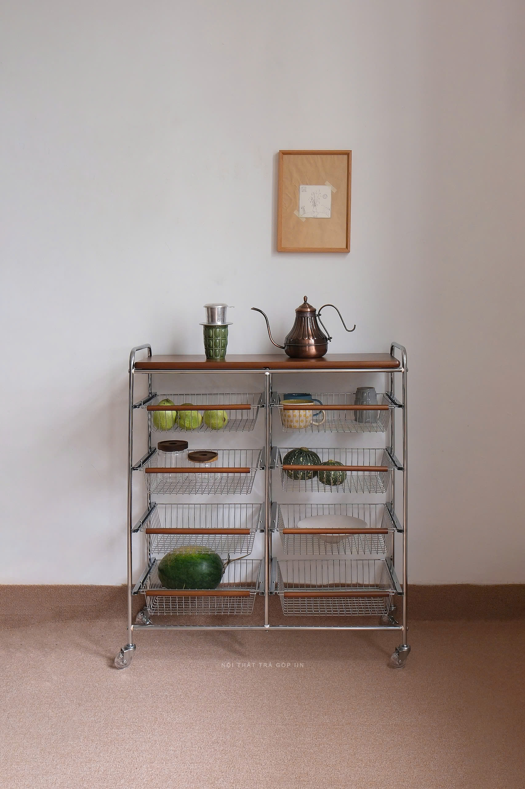 Lưu trữ đa năng: để đồ dùng bếp, văn phòng phẩm, mỹ phẩm hoặc vật dụng decor.
