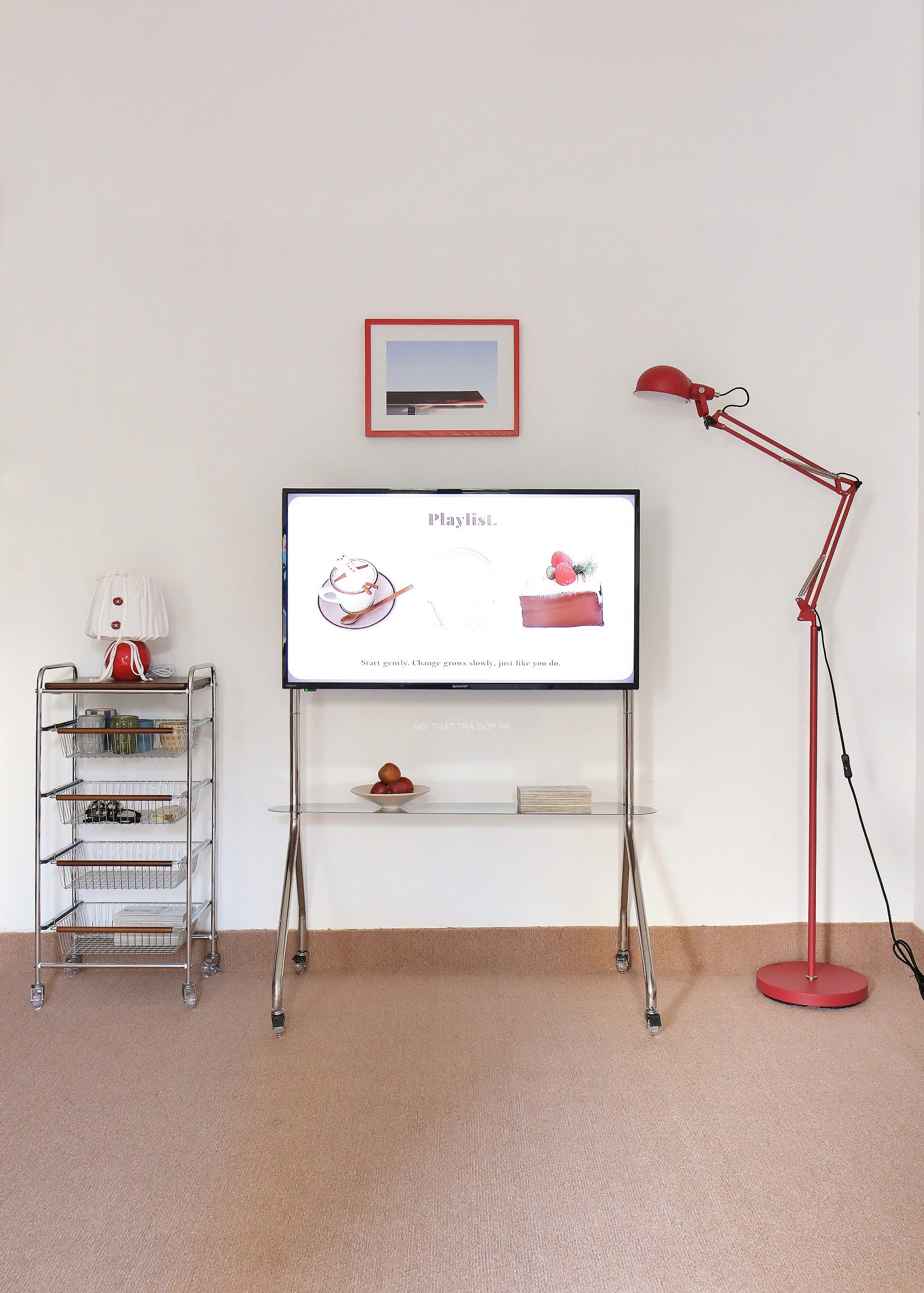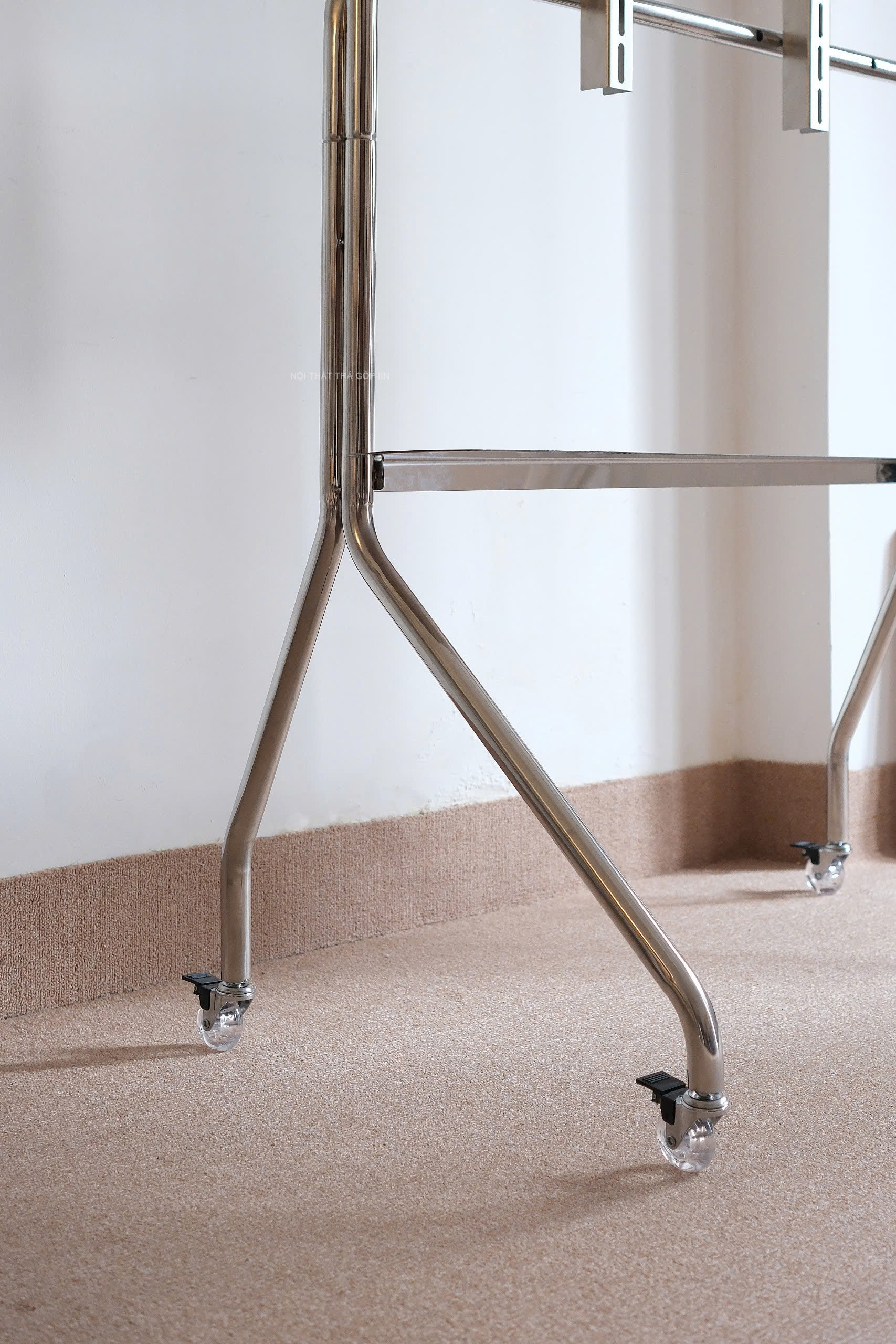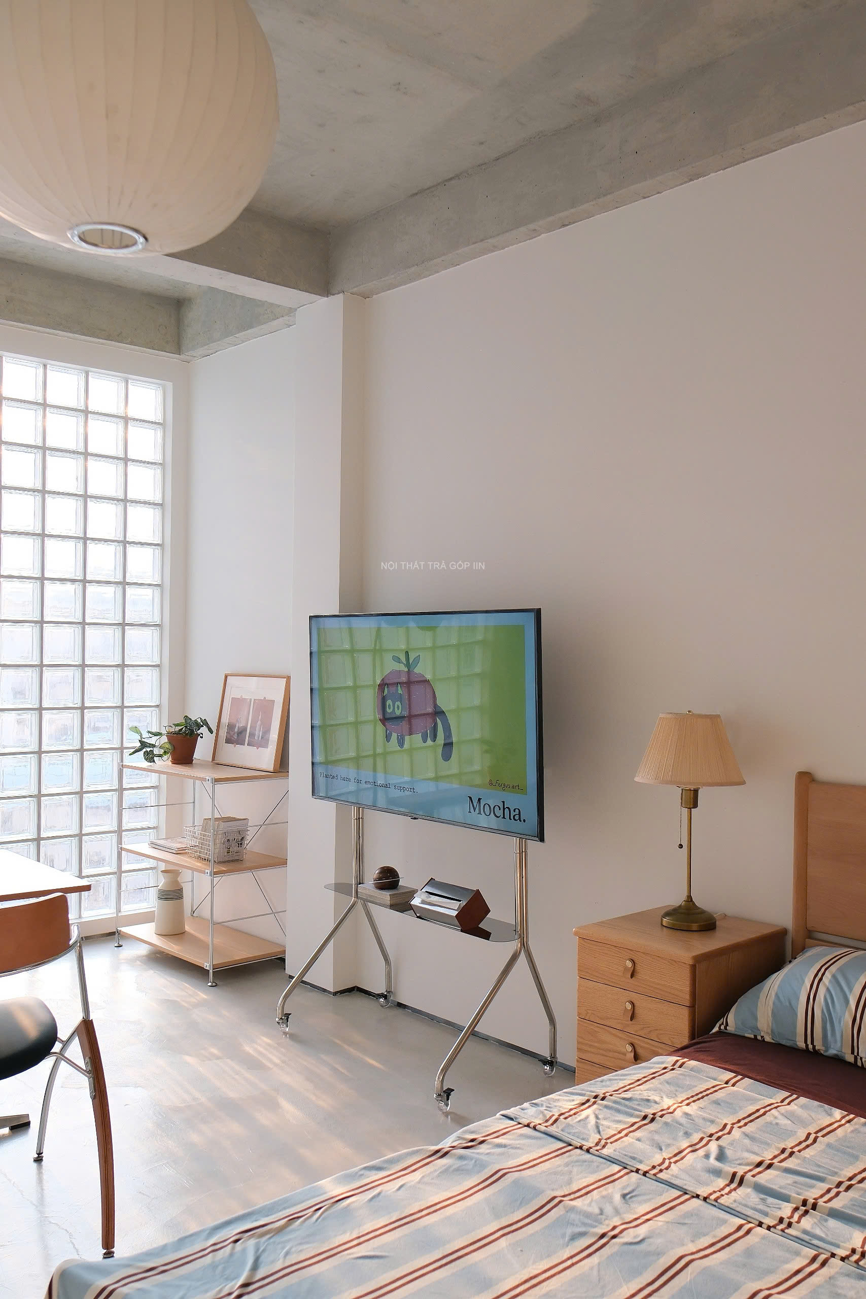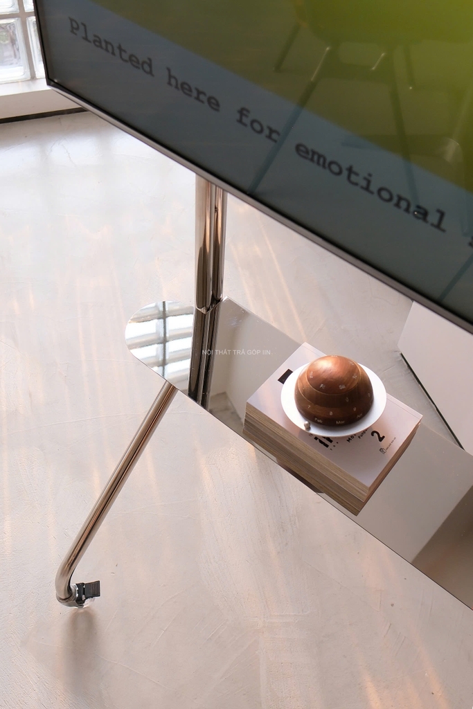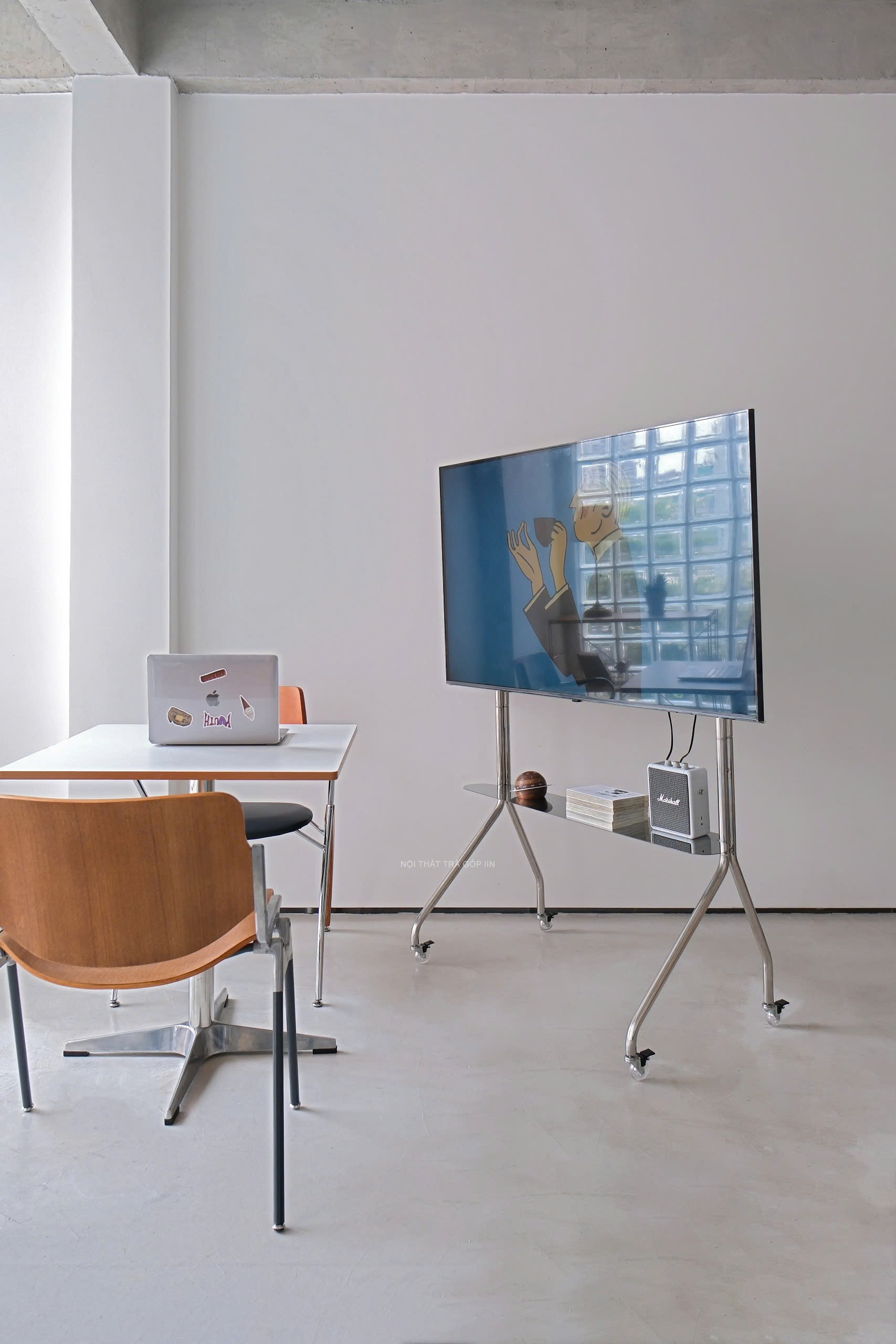 Trang bị bánh xe giúp di chuyển nhẹ nhàng, đi kèm khóa bánh để cố định an toàn khi sử dụng. Thiết kế tối giản, hiện đại, dễ phối với nhiều phong cách nội thất.