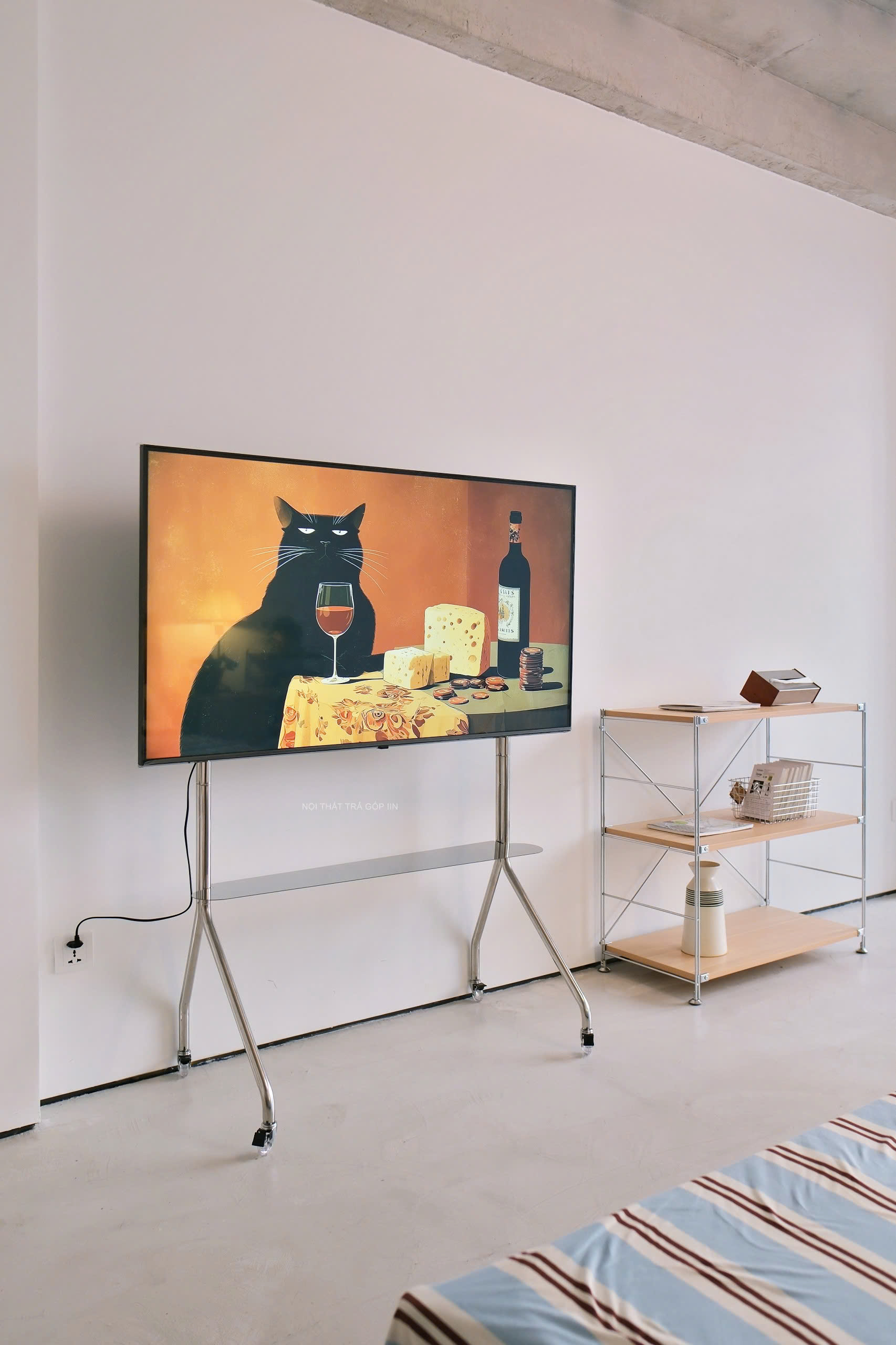 Khung kệ làm từ thép không gỉ chắc chắn, chịu lực tốt, phù hợp treo TV từ 43–65 inch. Kích thước 90 x 52 x 125 cm tối ưu cho cả phòng khách, phòng ngủ hay không gian làm việc.
