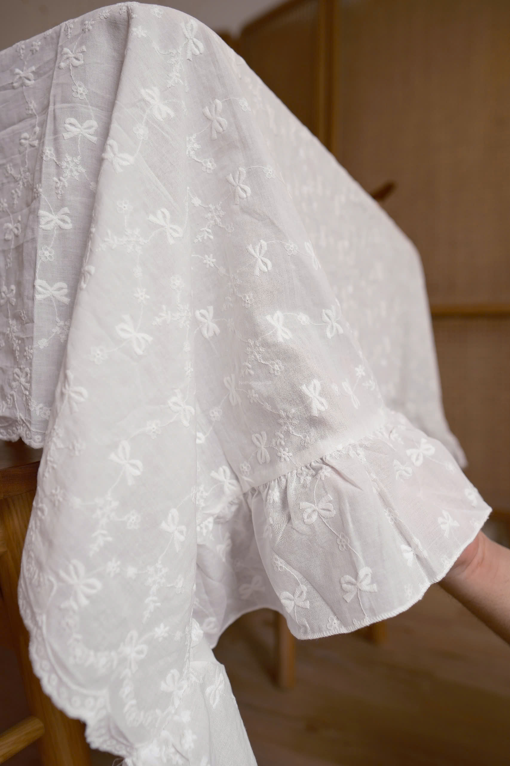 Khăn bàn trắng thêu nơ