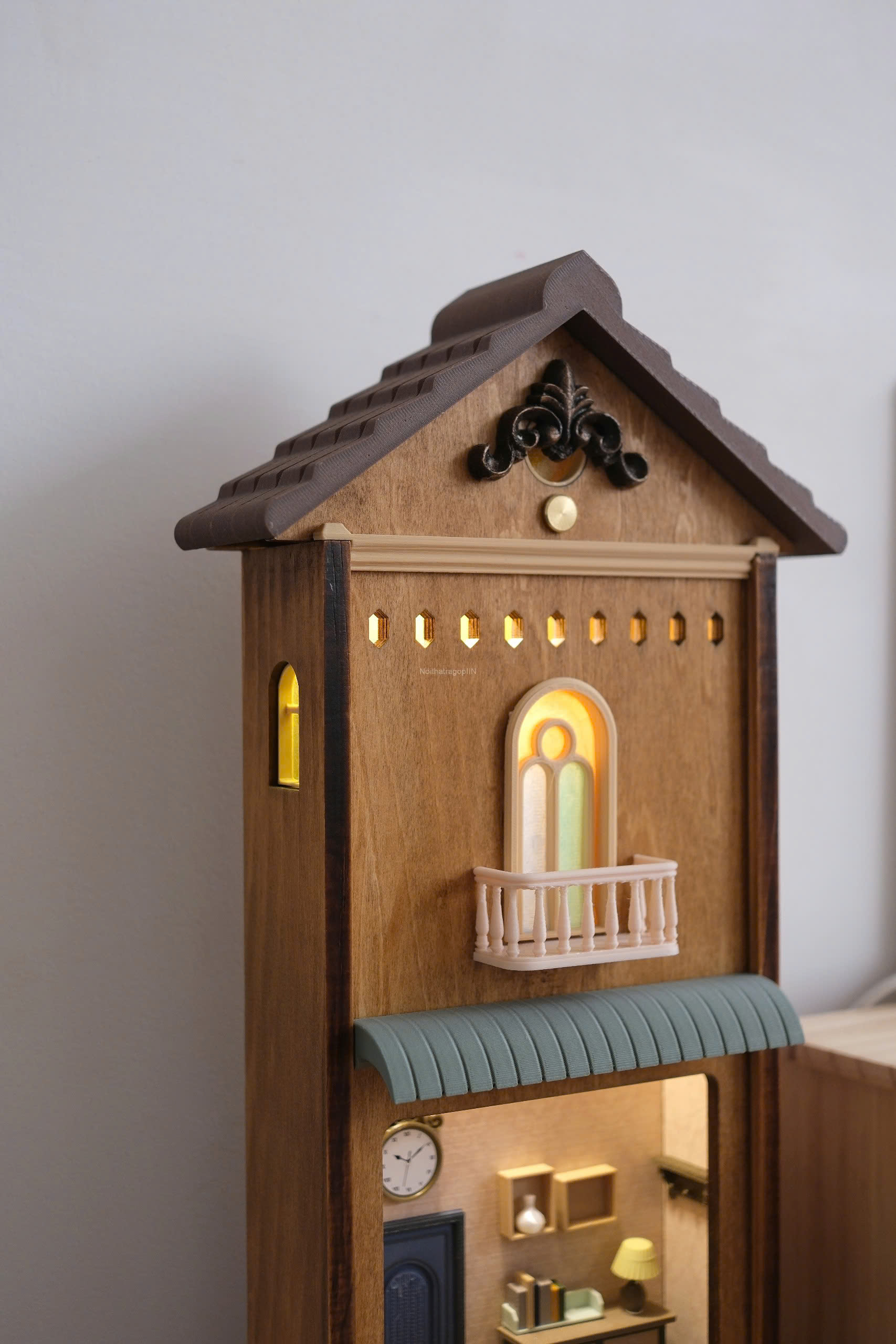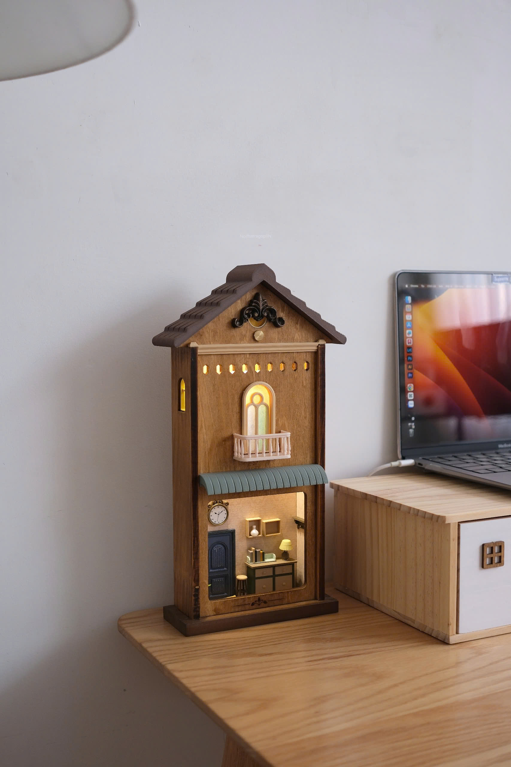 Một ngôi nhà gỗ sáng đèn xinh xắn cho không gian nhà của tụi mình ^^