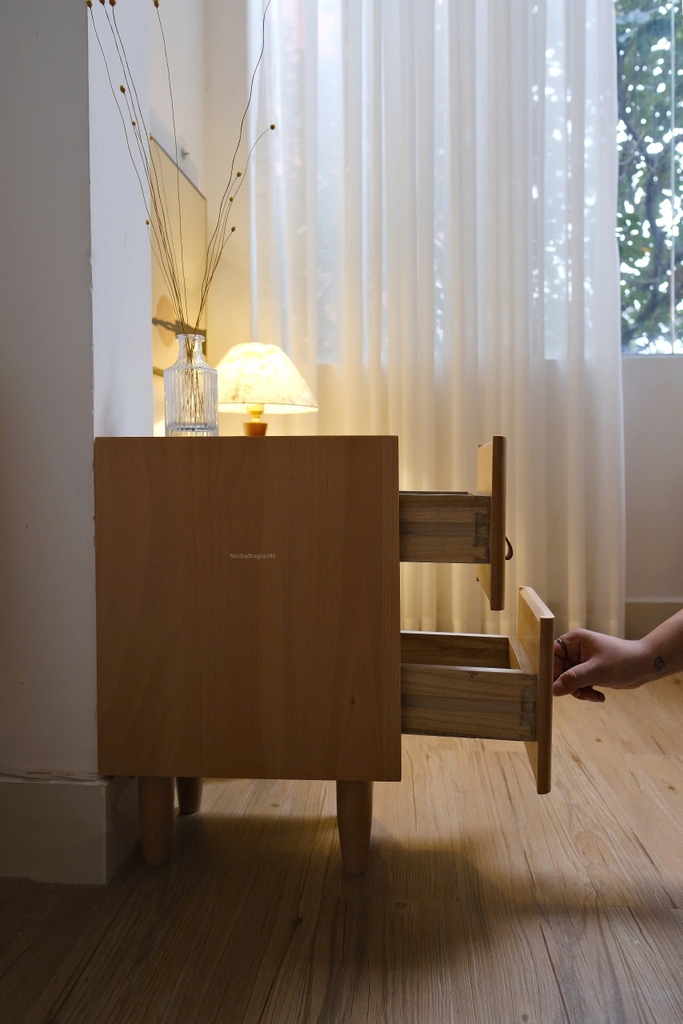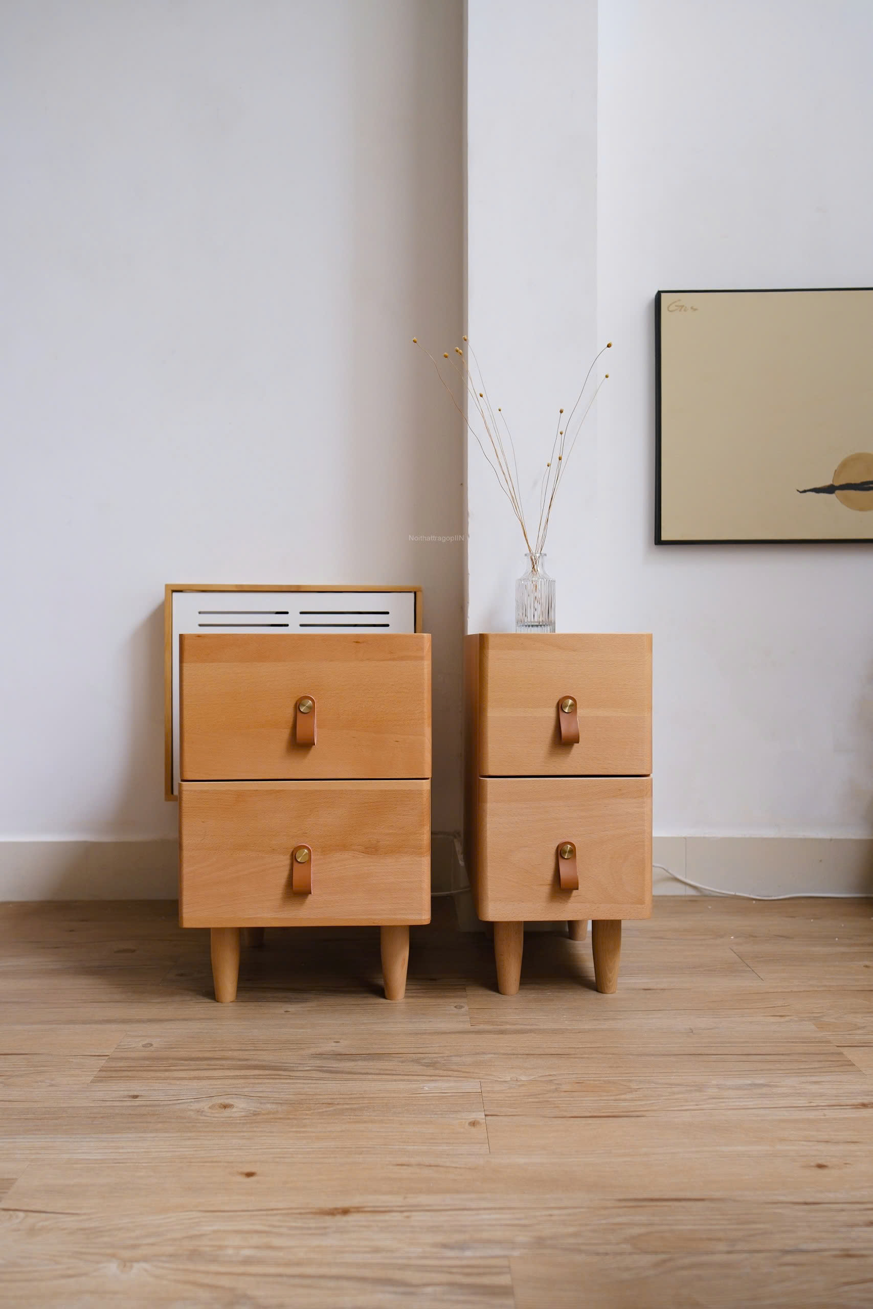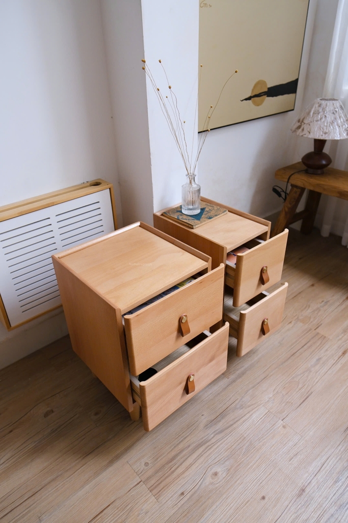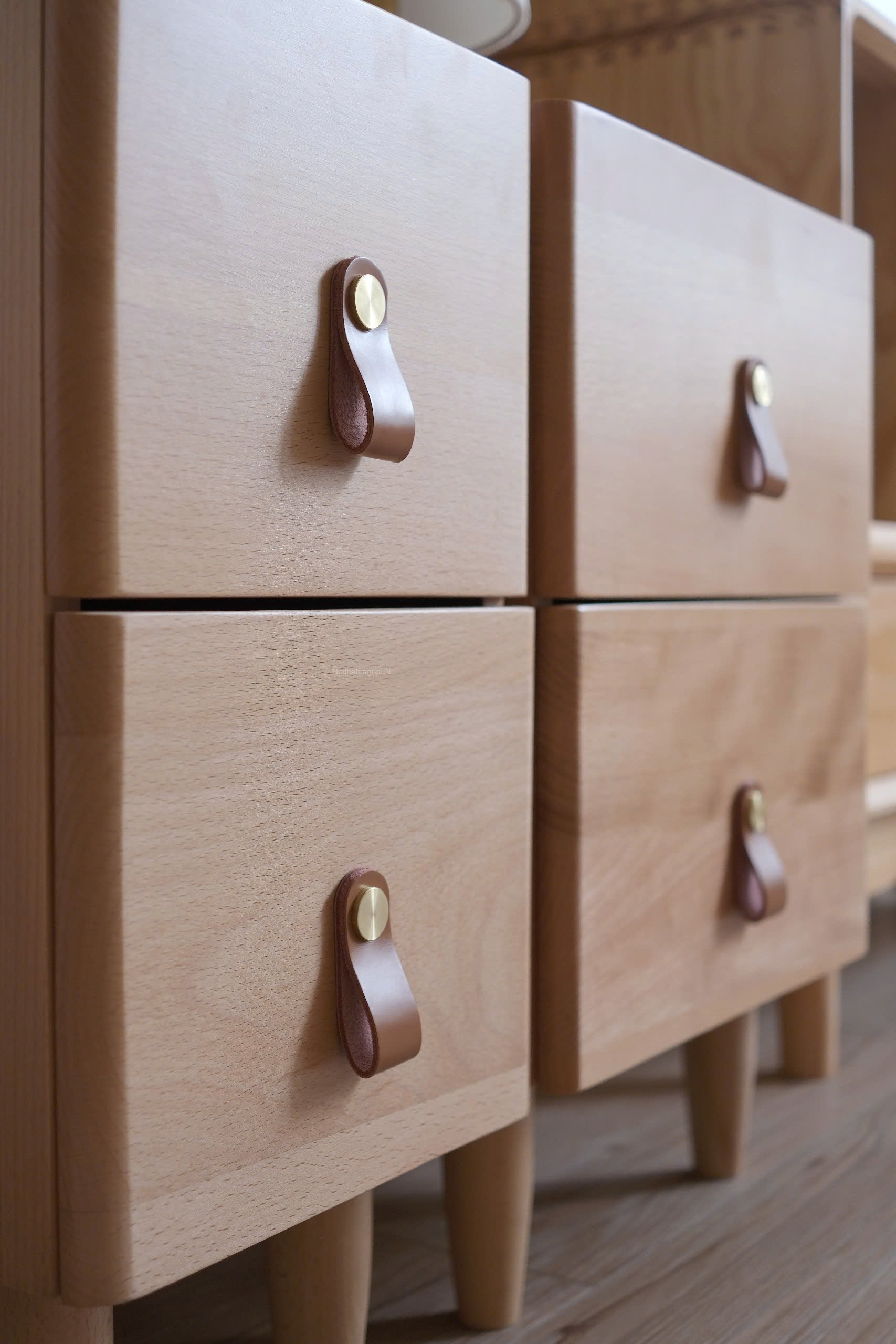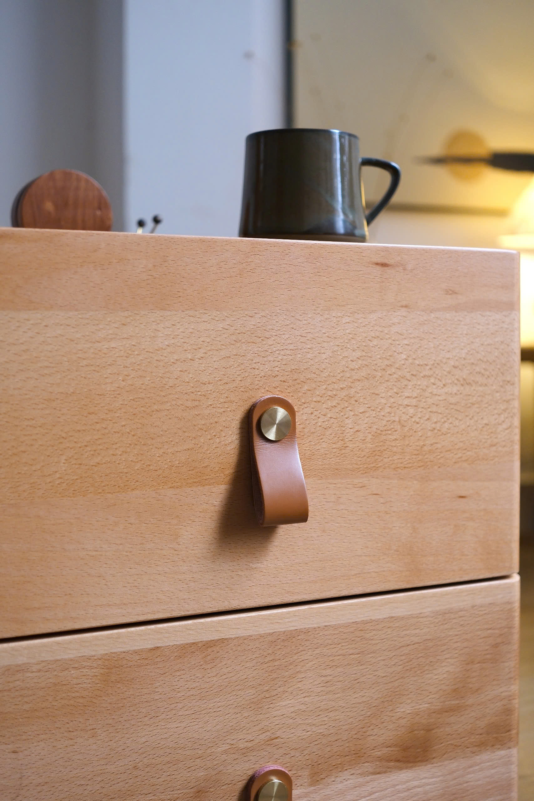 Chất liệu: gỗ sồi tự nhiên, tay nắm da.