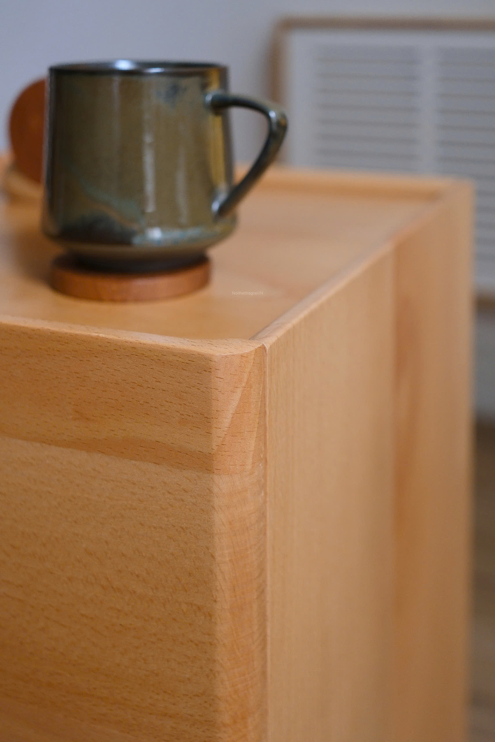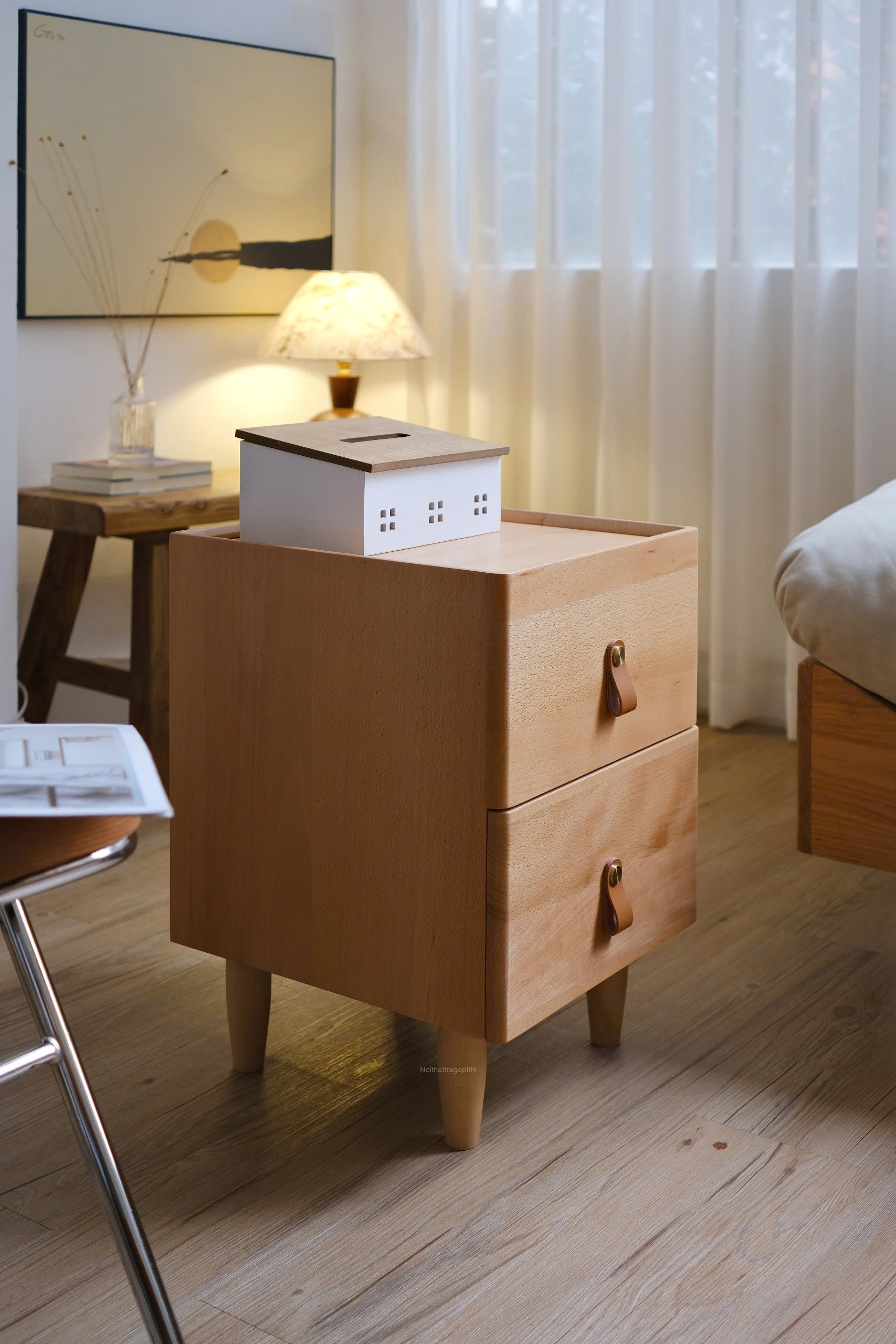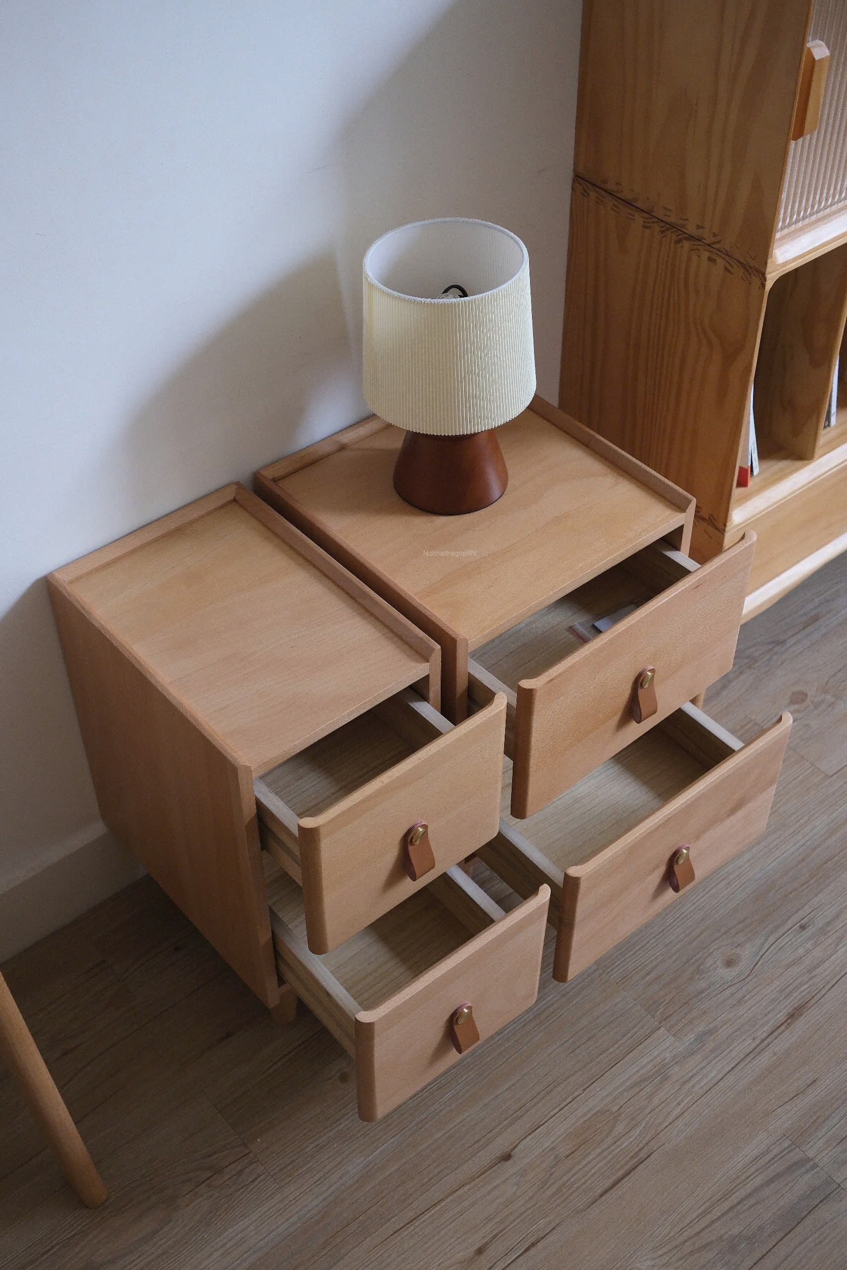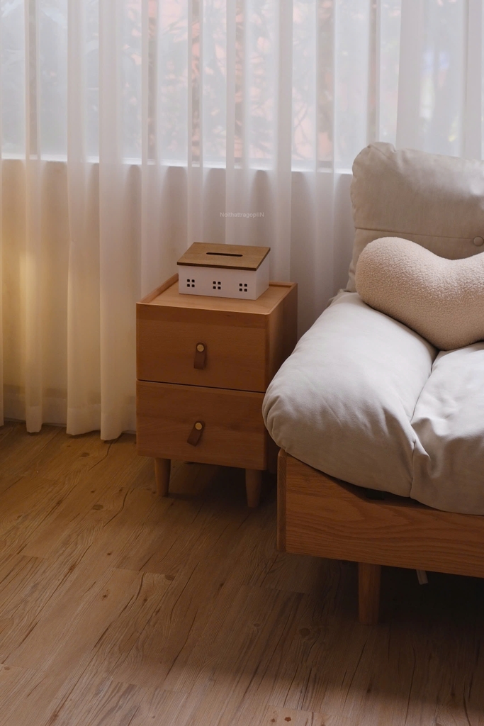 Chất liệu: gỗ sồi tự nhiên, tay nắm da.