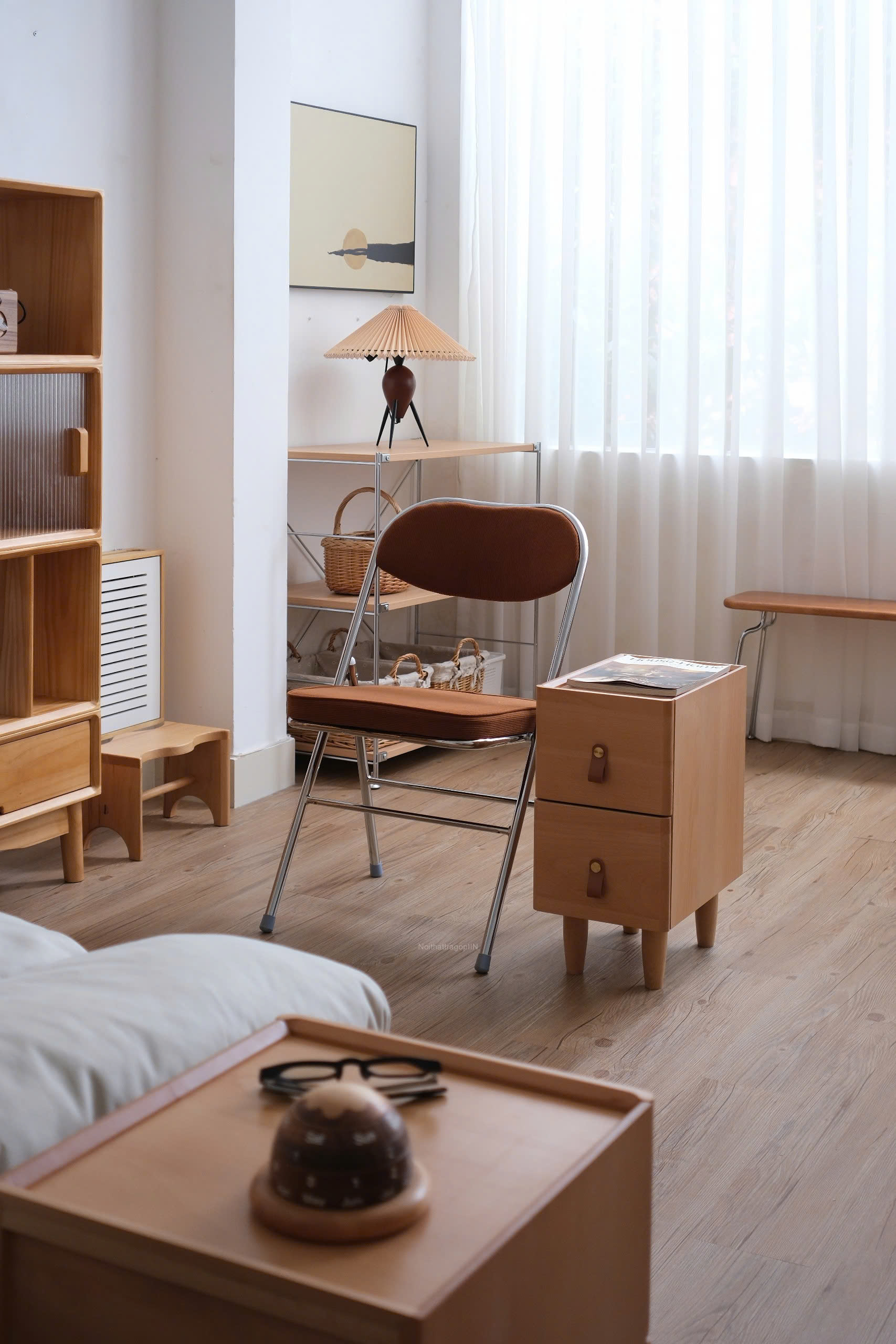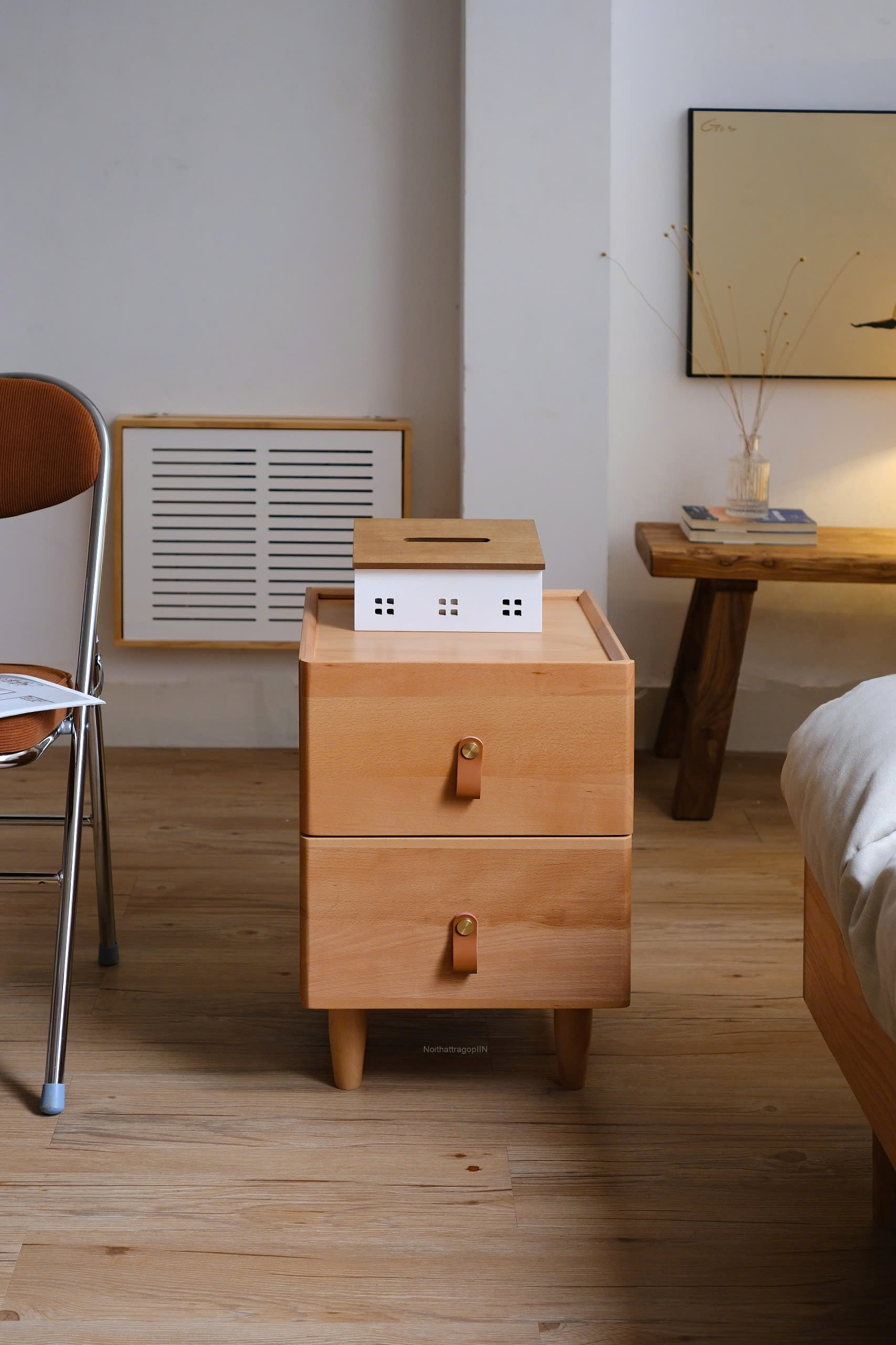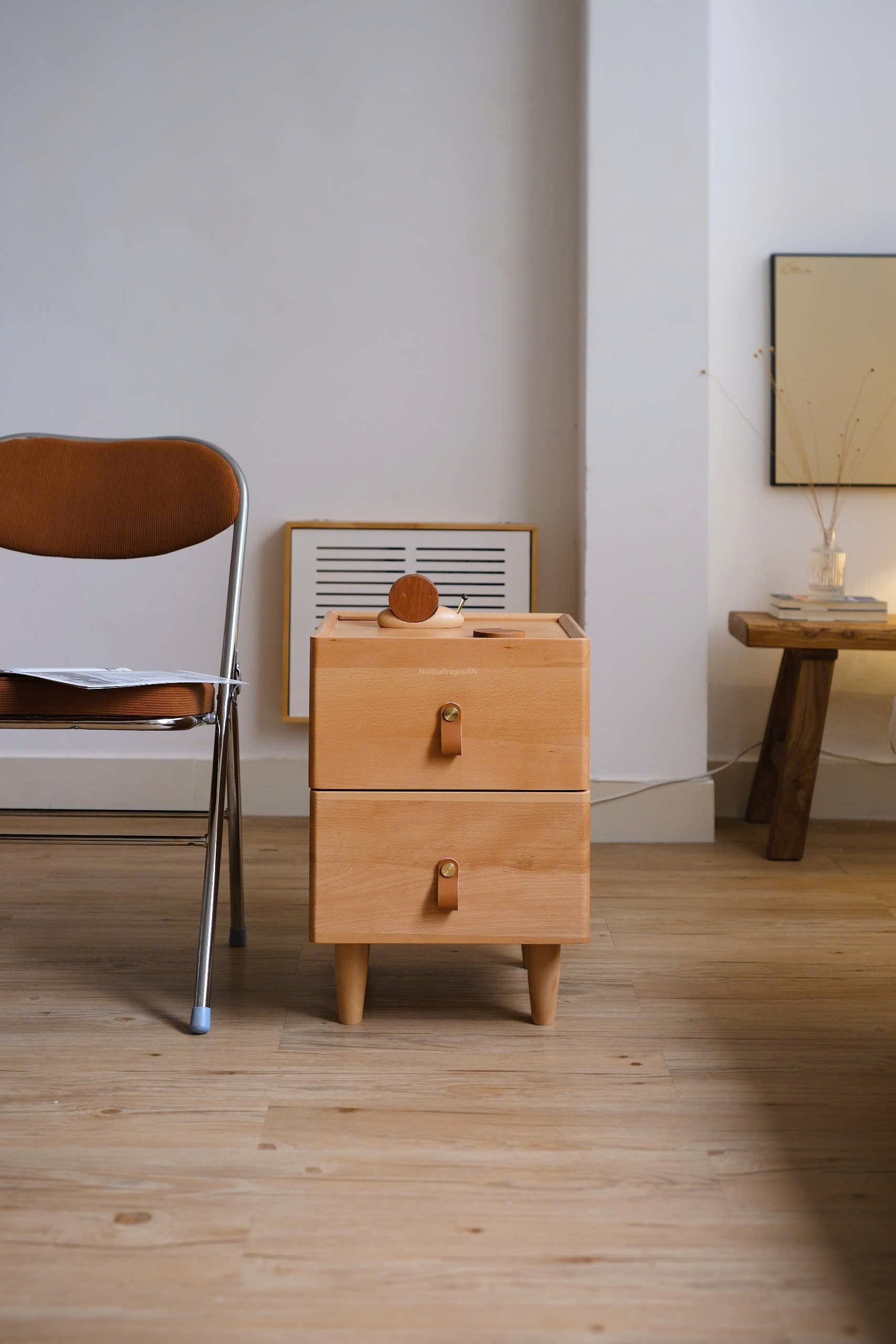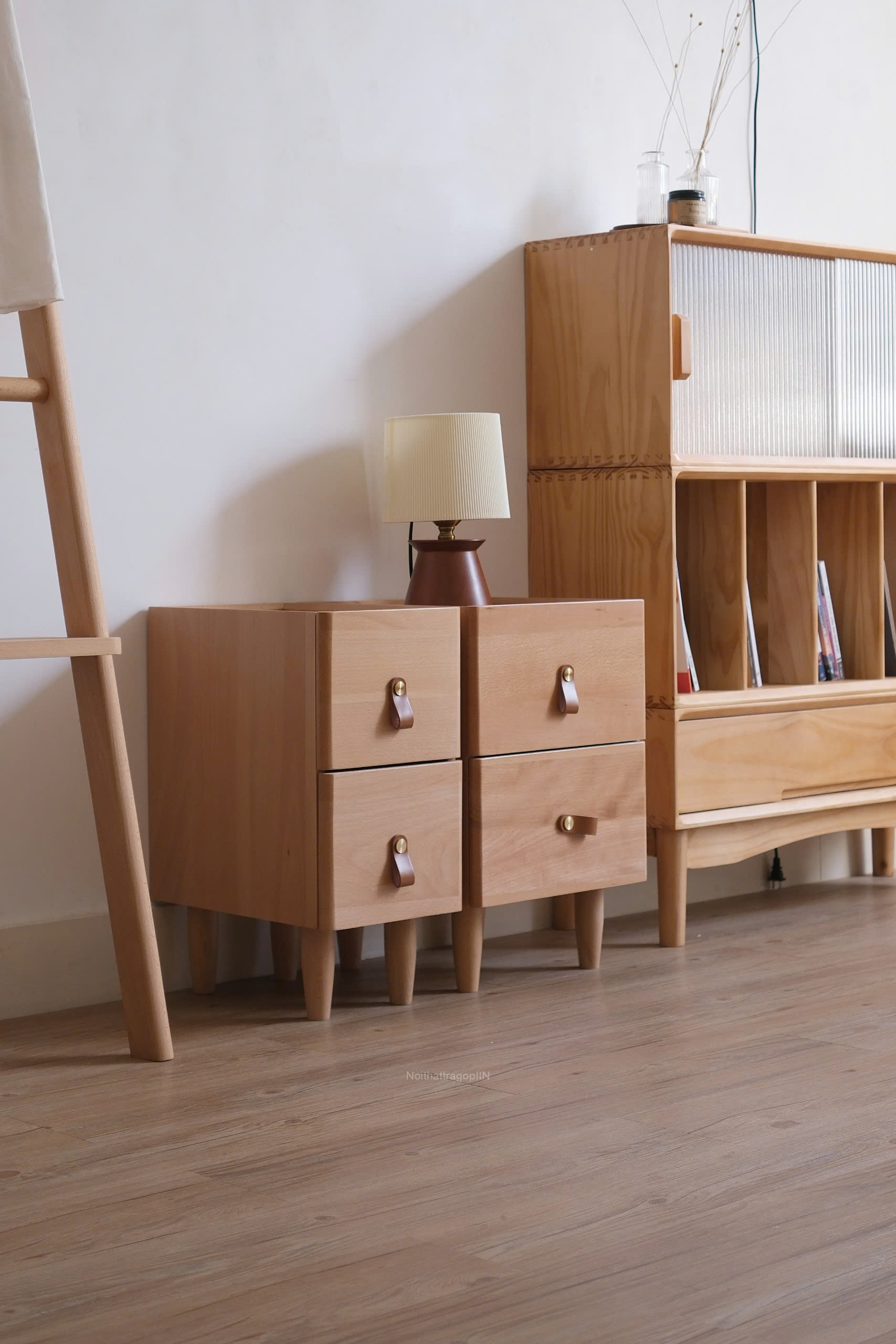 Chất liệu: gỗ sồi tự nhiên, tay nắm da.