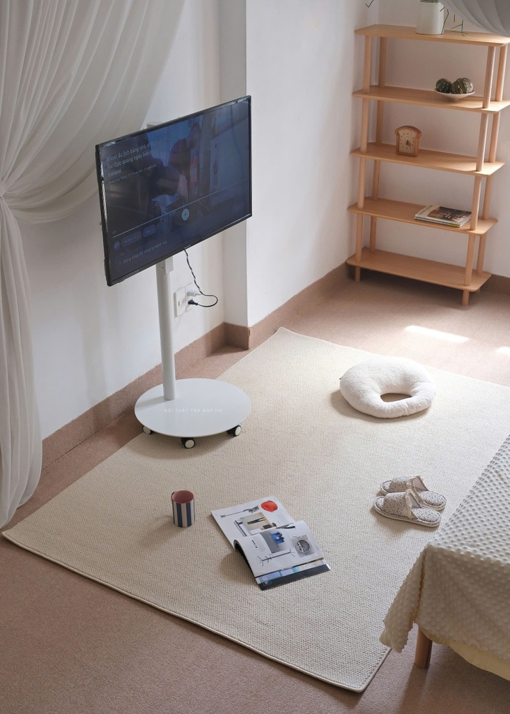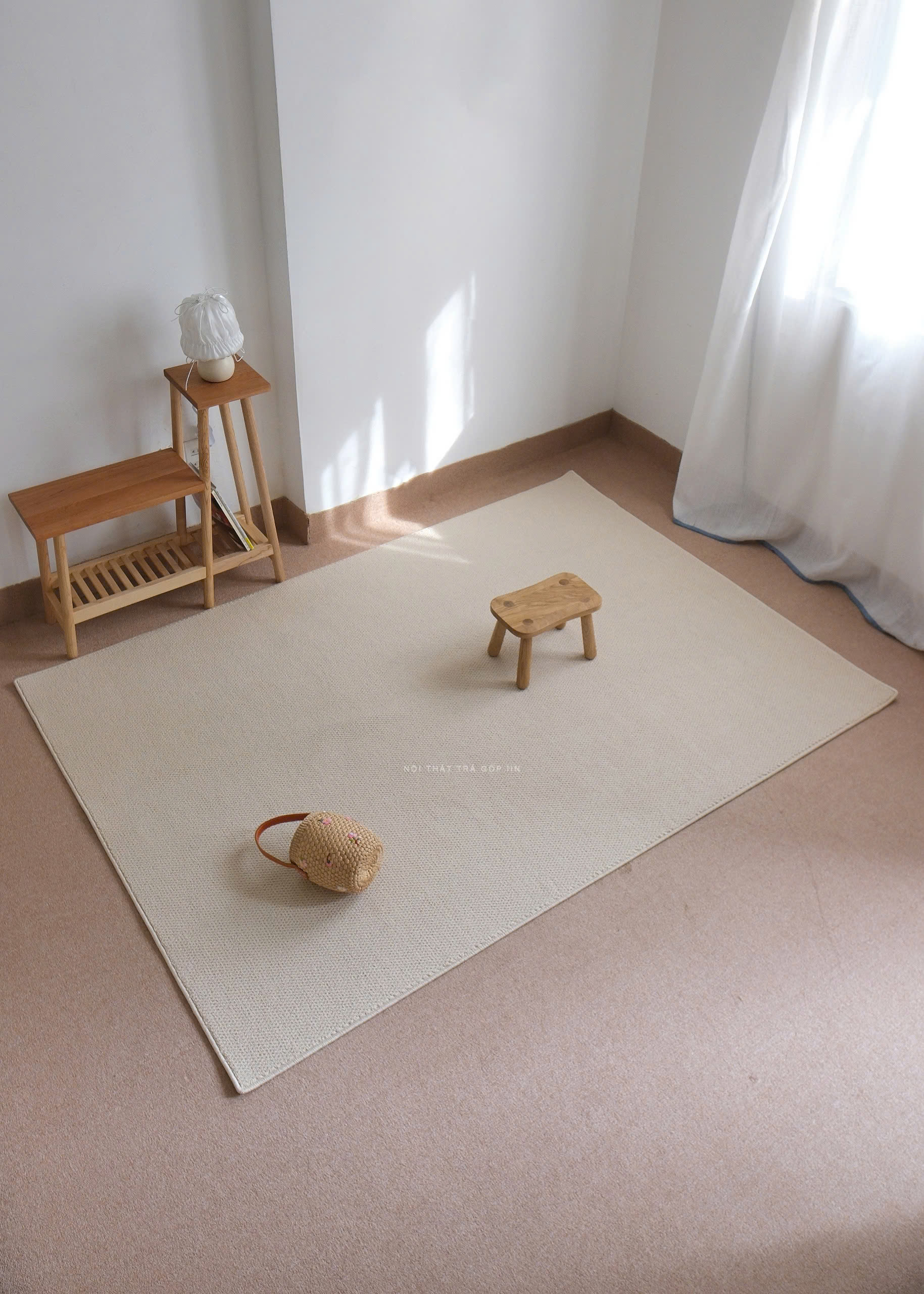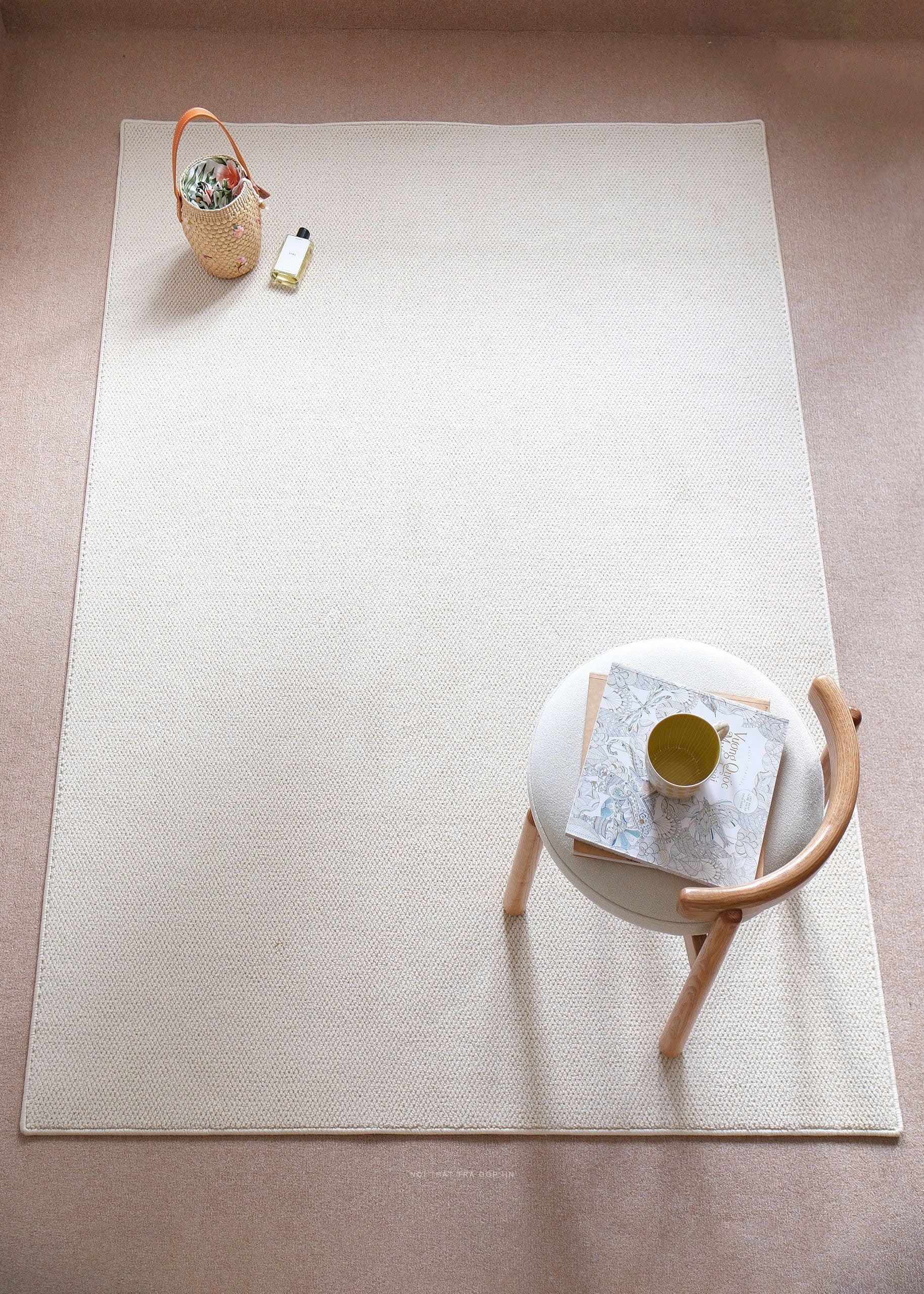 Chiếc thảm len màu kem nhạt xinh xắn, dễ dàng “hoà nhập” với nhiều kiểu không gian khác nhau.