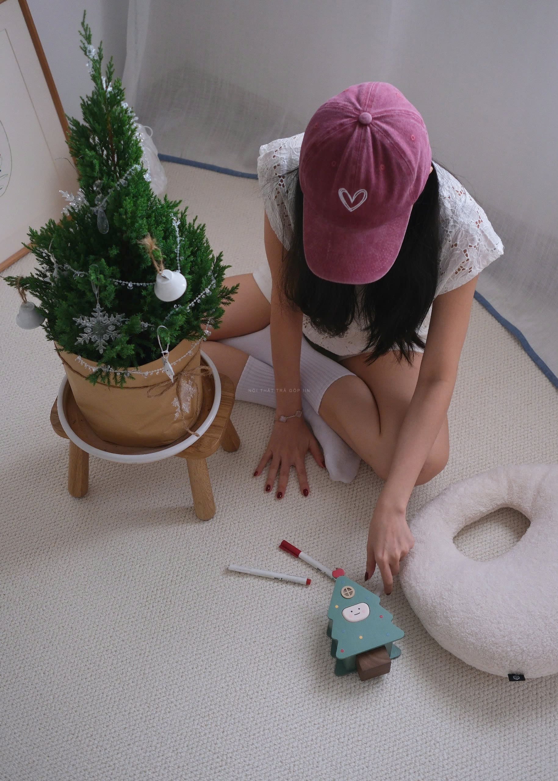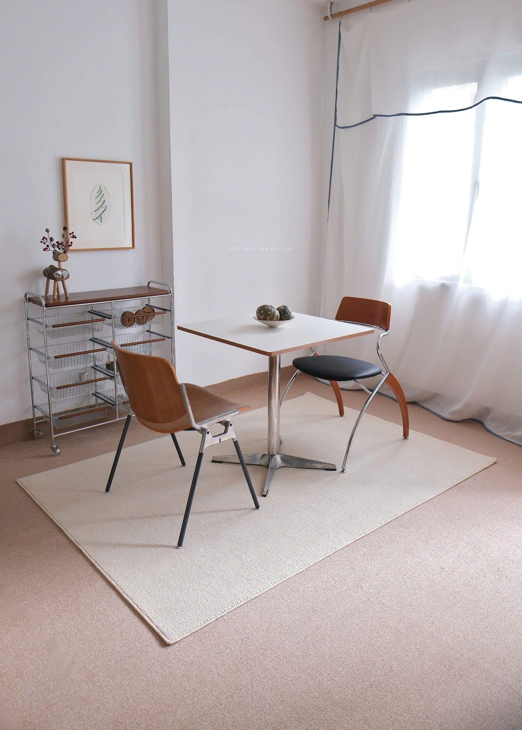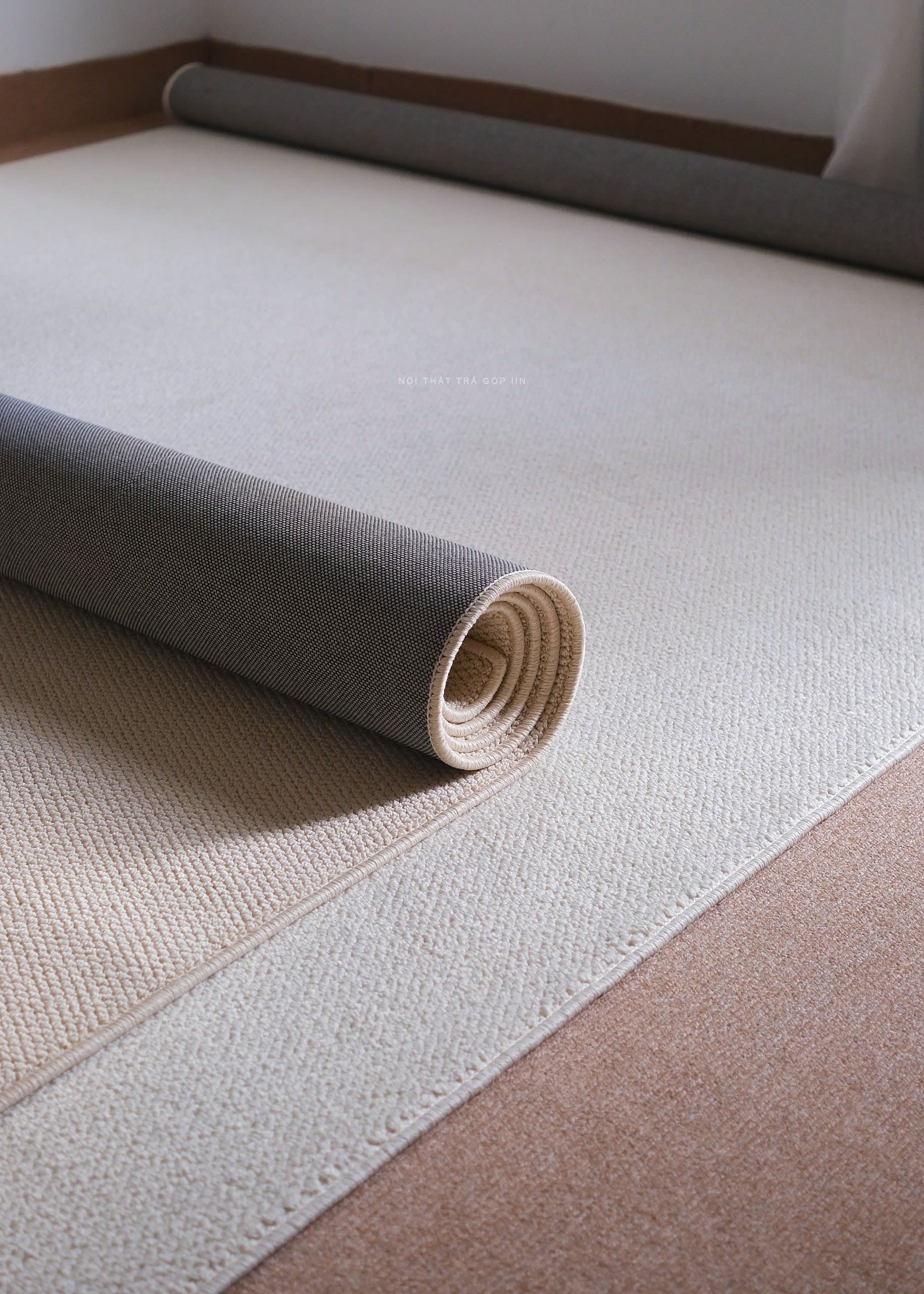 Chiếc thảm len màu kem nhạt xinh xắn, dễ dàng “hoà nhập” với nhiều kiểu không gian khác nhau.
