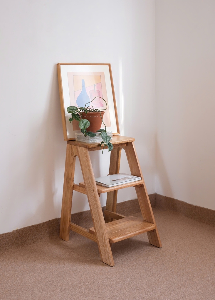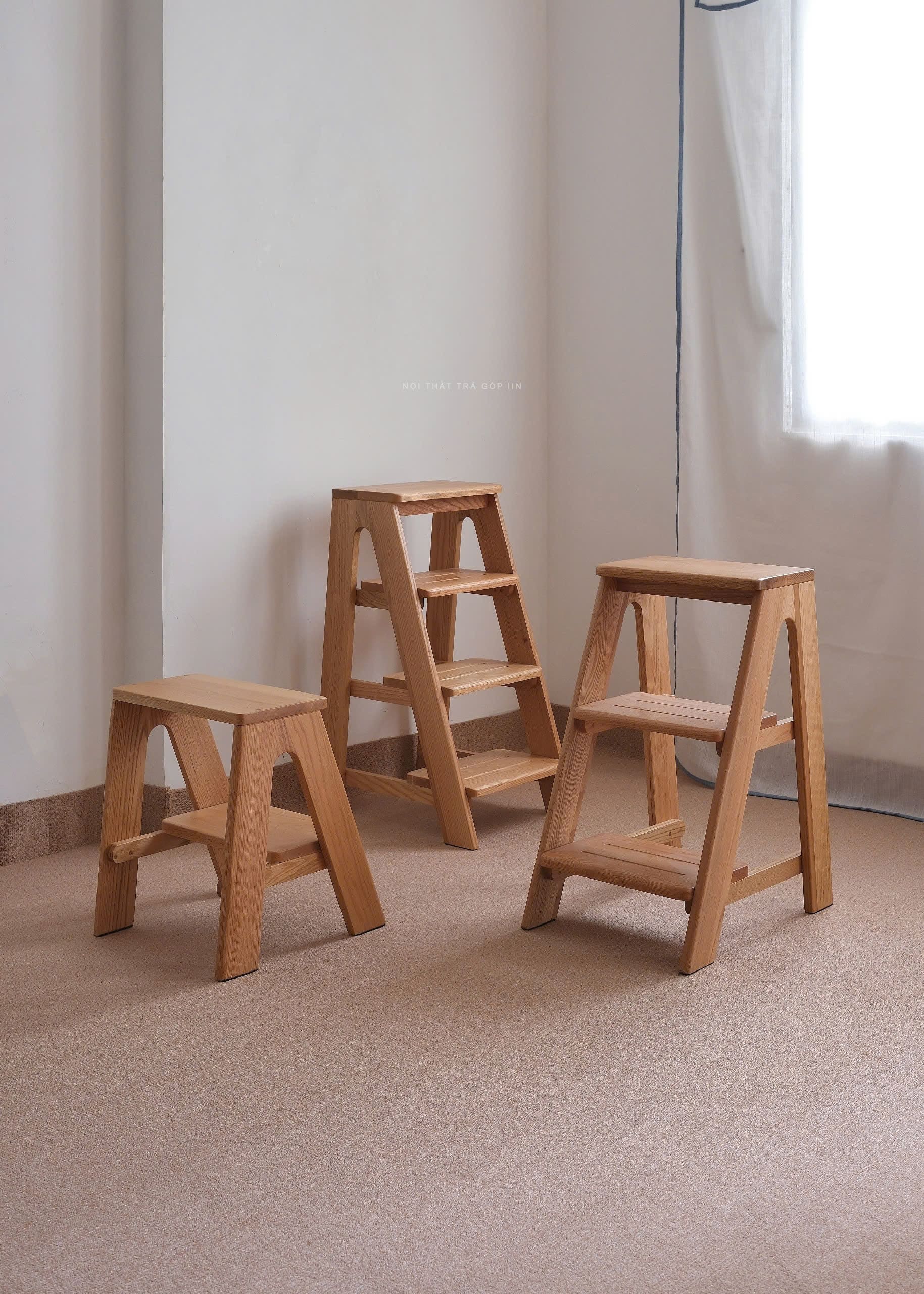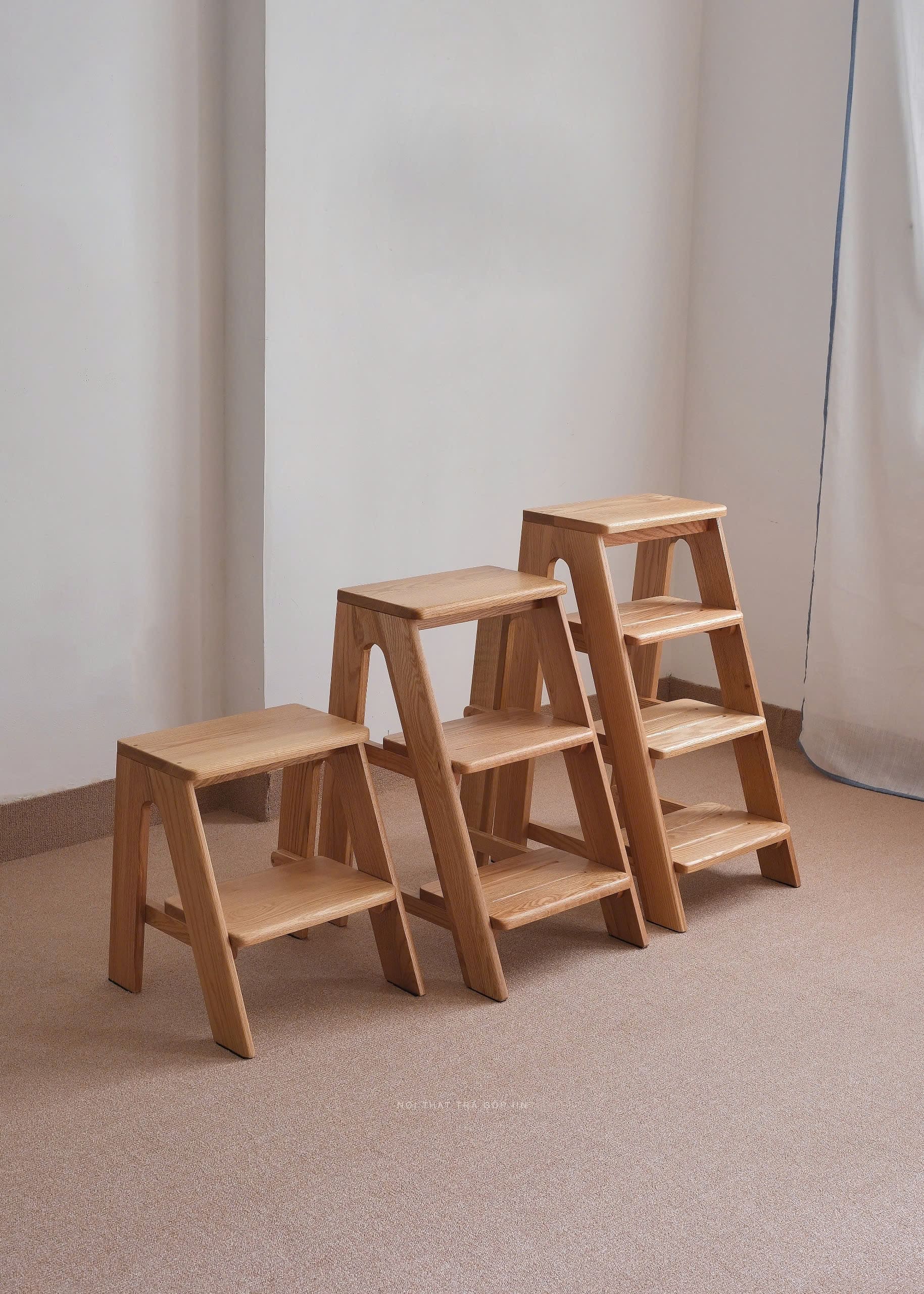 Chiếc thang gỗ nguyên khối đa năng vừa chắc chắn vừa đẹp mắt – một món đồ nhỏ mà làm được khối việc! ✨