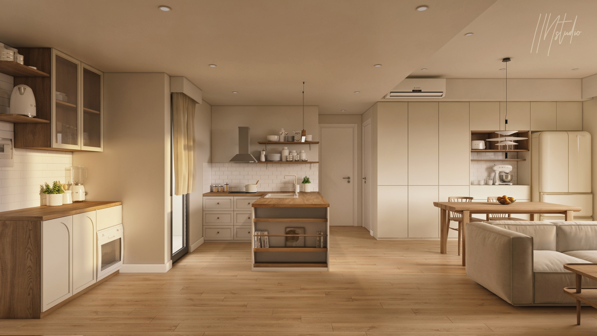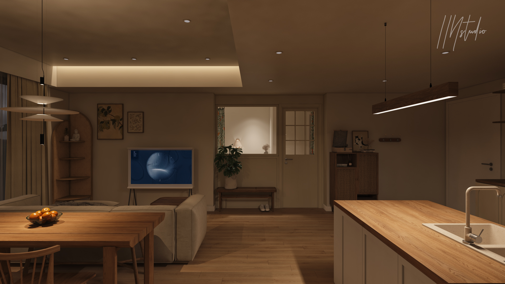 Thật ra đây là một căn hộ đã đong đầy "tình cảm" trước khi IIN nhúng tay vào. Mình cố gắng giữ lại tối đa đồ đạc mà gia chủ đã tha từng món về tổ, bởi vì bài toán tiết kiệm là một và kèm theo là sự ngưỡng mộ của IIN với gu thẩm mỹ của "gia đình nhỏ" này. Khi thiết kế, mình luôn nghĩ về bầu không khí dễ chịu và ấm áp của căn nhà và ra được kết quả như bên dưới. Vẫn chưa phải 100% là bản vẽ cuối cùng nhưng IIN xin phép chia sẽ "cảm xúc đầu tiên" này đến mọi người trước nha.